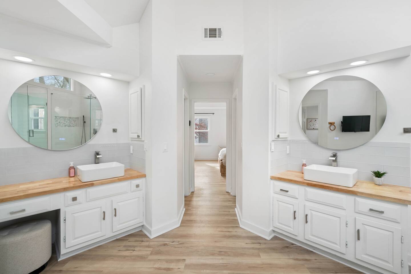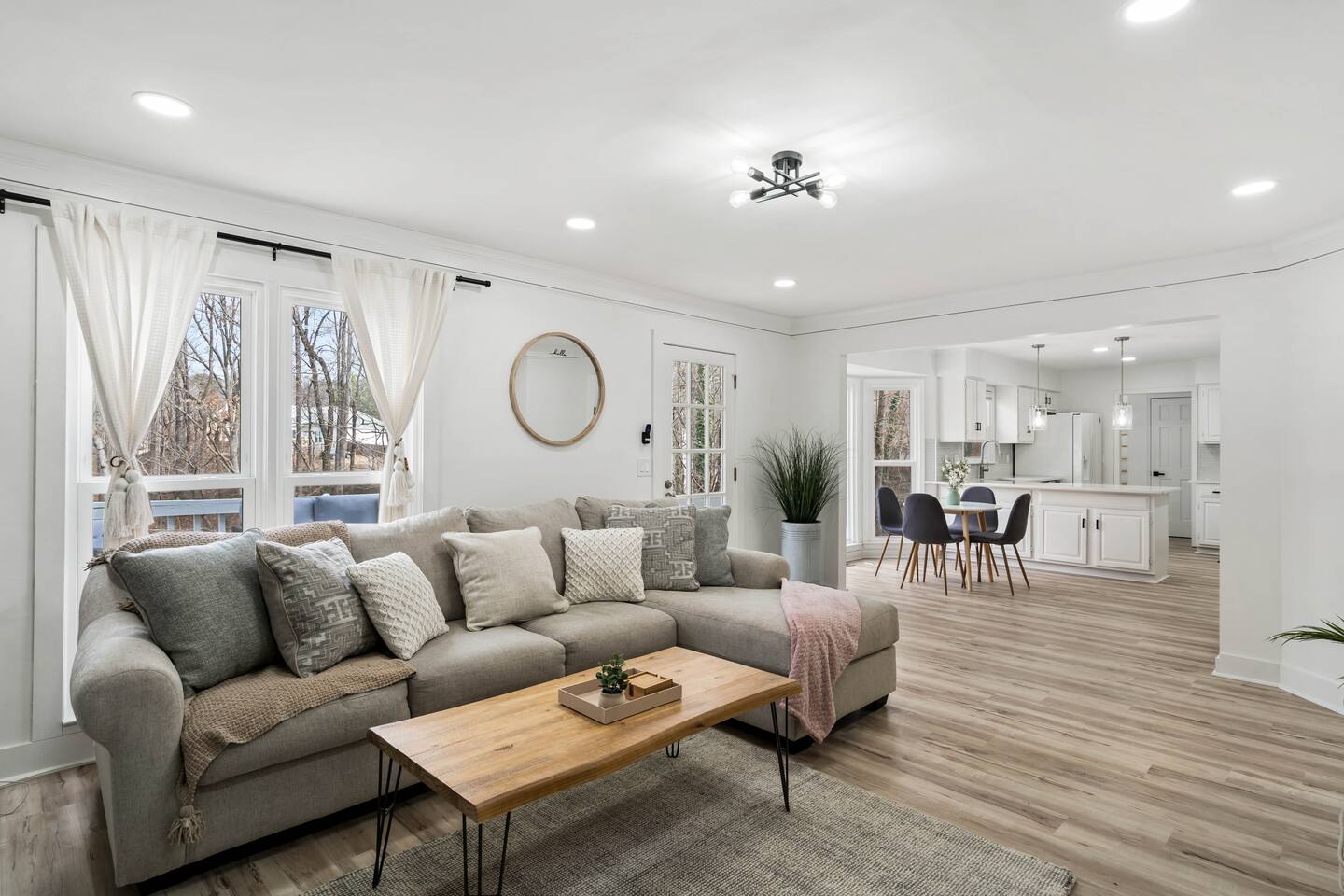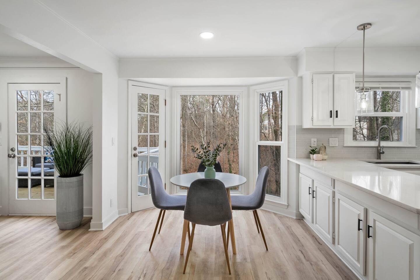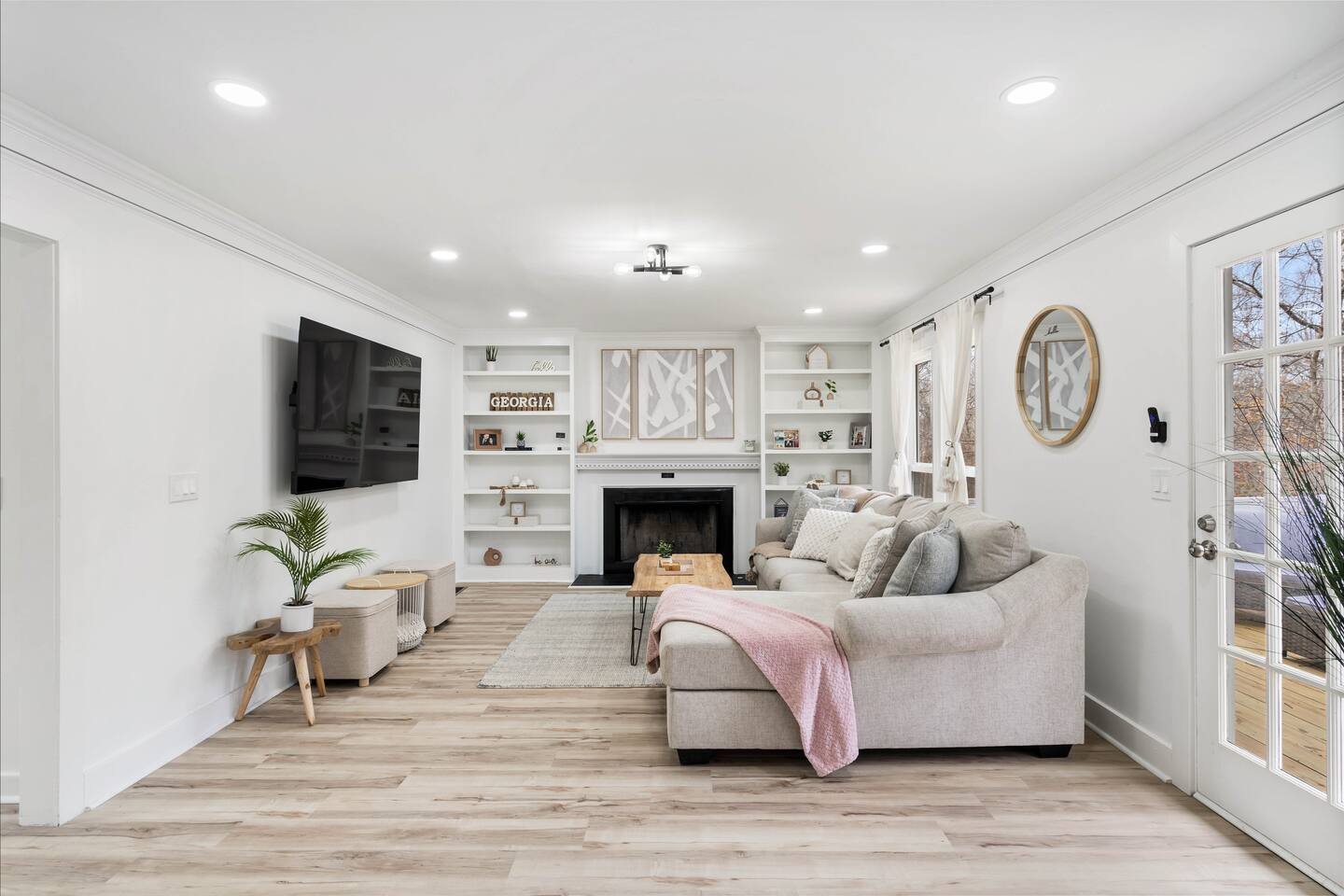 Our home is a spacious 6-bedroom, 3.5-bathroom sanctuary—nearly 5,000 square feet of living space—perfect for families, groups of friends, or anyone who wants more room to breathe. Completely renovated in spring 2023, it blends modern comfort with thoughtful design. Tucked into a peaceful neighborhood just 20 minutes from downtown Atlanta, it gives you easy access to the city while feeling like a calm retreat. As you step in, the main two levels host four comfortable bedrooms and 2.5 bathrooms, along with a large dining room and an open kitchen built for making meals together. The basement expands the living space further: it includes a sixth bedroom and a full bathroom, and the heart of the lower level is a game room complete with a pool table and a wet bar—ideal for friendly competition, casual evenings, or simply lounging with drinks and conversation. Each of the six bedrooms is outfitted with a plush bed and its own 55-inch 4K smart TV, so everyone can unwind with a show or movie after a busy day. The master suite feels like its own mini getaway: cathedral vaulted ceilings, a huge walk-in shower, and a generous soaking tub let you soak away the day in comfort. The home’s living room centers around a 75-inch TV, inviting movie nights or big-screen gatherings. One of the highlights is our outdoor entertainment space. Step onto the back deck to find seating for relaxing or dining outside. A 55-inch 4K TV is mounted for outdoor movie or game viewing under the sky, making it an excellent spot for al fresco evenings. An additional patio ensures there’s room to stretch out, enjoy the air, or sip your morning coffee in the shade. Our kitchen is fully stocked with everything home cooks might need—pots, pans, utensils, seasonings, and space to prepare group meals. The dining room seats eight comfortably, and the overall layout supports socializing without cramping movement. Whether your group wants to come together or spread out, there are places to gather and places to retreat. When you stay here, you get full access to the house: all six bedrooms, all 3.5 bathrooms, both living levels plus the basement game room, and all outdoor areas. We designed this home so guests can feel both at ease and inspired—whether your plan is full days out in Atlanta, time together indoors, or both. Let this house be your base for laughter, rest, and shared memories.