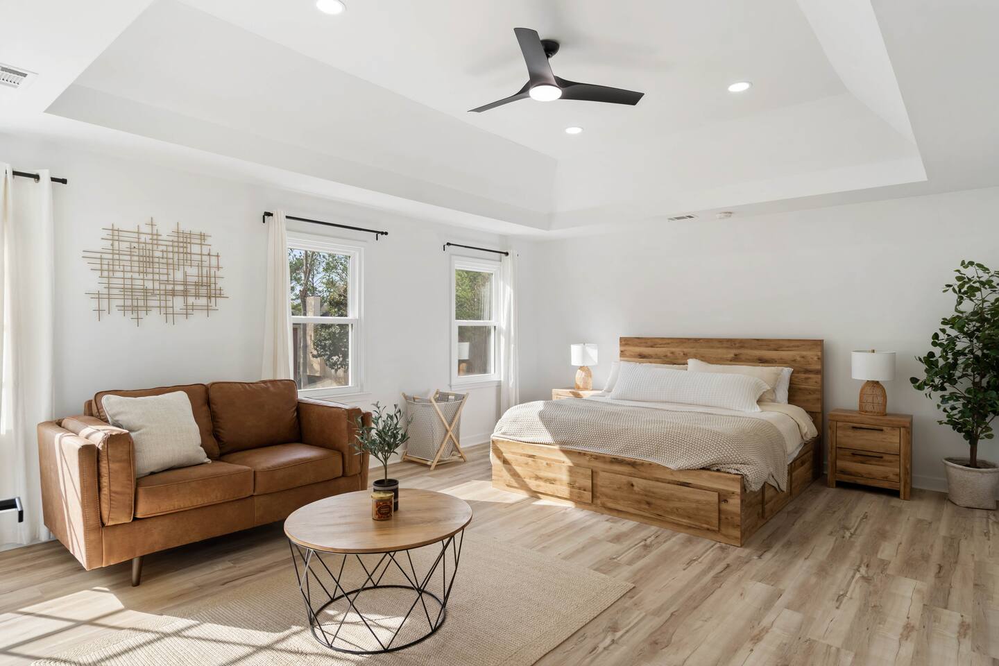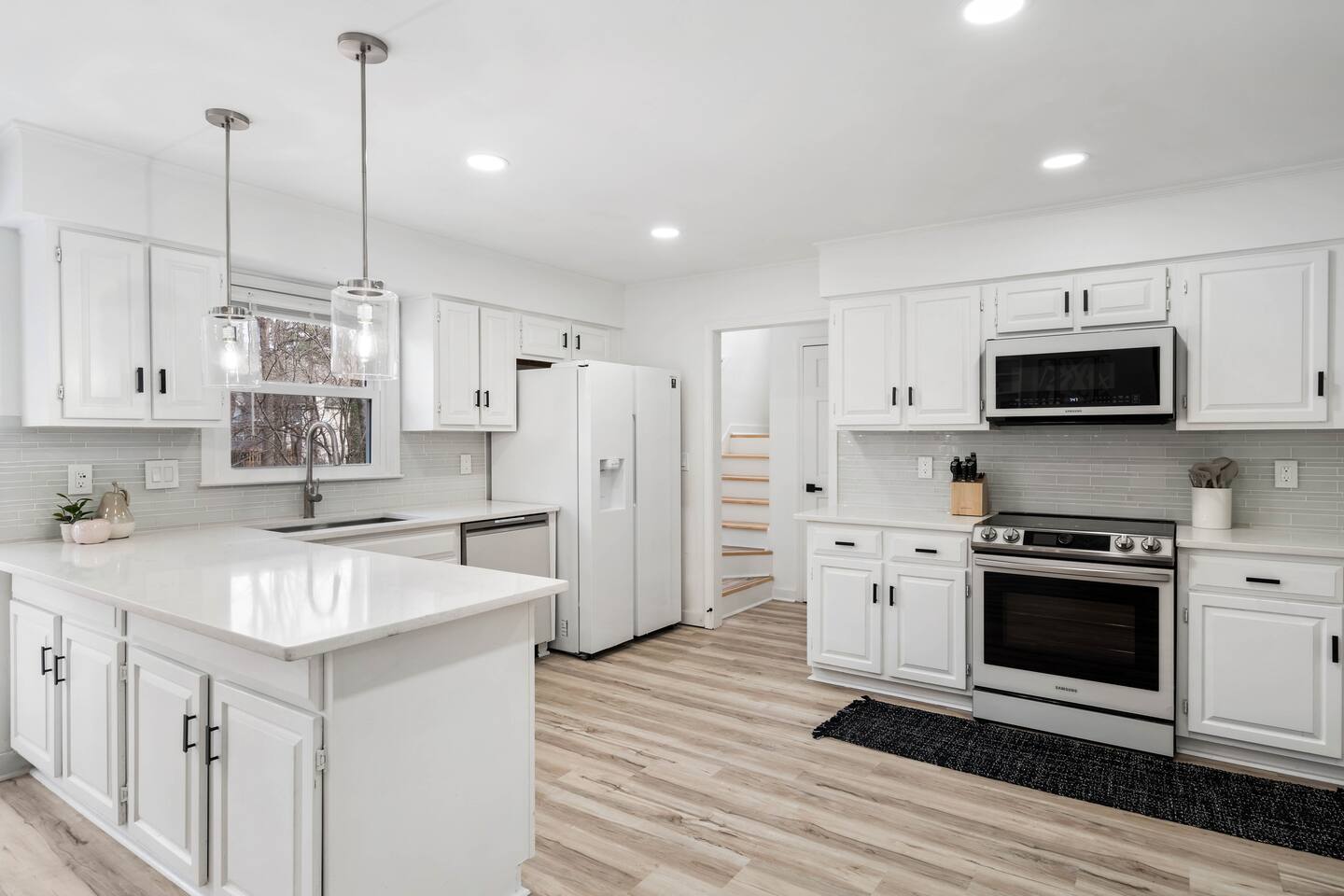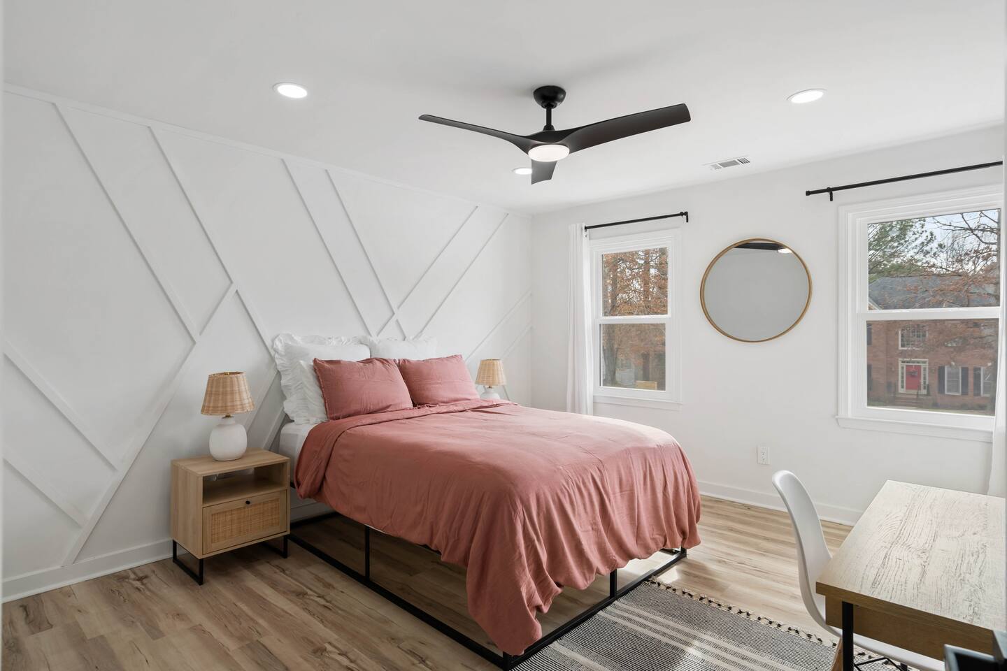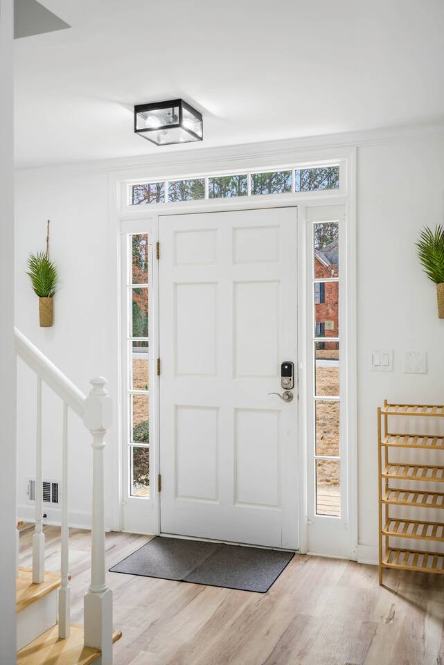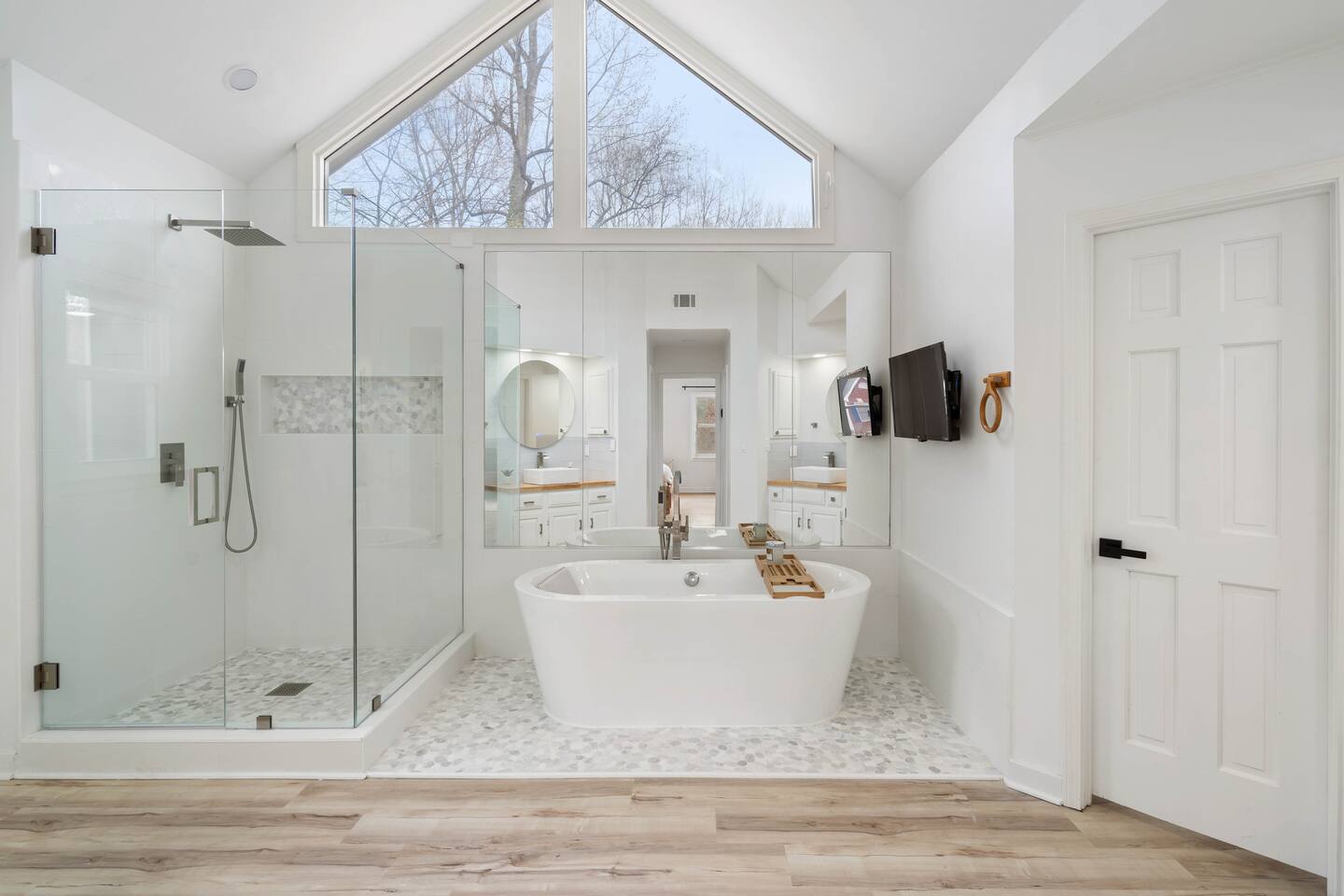 Our home is a spacious 6-bedroom, 3.5-bathroom sanctuary—nearly 5,000 square feet of living space—perfect for families, groups of friends, or anyone who wants more room to breathe. Completely renovated in spring 2023, it blends modern comfort with thoughtful design. Tucked into a peaceful neighborhood just 20 minutes from downtown Atlanta, it gives you easy access to the city while feeling like a calm retreat. As you step in, the main two levels host four comfortable bedrooms and 2.5 bathrooms, along with a large dining room and an open kitchen built for making meals together. The basement expands the living space further: it includes a sixth bedroom and a full bathroom, and the heart of the lower level is a game room complete with a pool table and a wet bar—ideal for friendly competition, casual evenings, or simply lounging with drinks and conversation. Each of the six bedrooms is outfitted with a plush bed and its own 55-inch 4K smart TV, so everyone can unwind with a show or movie after a busy day. The master suite feels like its own mini getaway: cathedral vaulted ceilings, a huge walk-in shower, and a generous soaking tub let you soak away the day in comfort. The home’s living room centers around a 75-inch TV, inviting movie nights or big-screen gatherings. One of the highlights is our outdoor entertainment space. Step onto the back deck to find seating for relaxing or dining outside. A 55-inch 4K TV is mounted for outdoor movie or game viewing under the sky, making it an excellent spot for al fresco evenings. An additional patio ensures there’s room to stretch out, enjoy the air, or sip your morning coffee in the shade. Our kitchen is fully stocked with everything home cooks might need—pots, pans, utensils, seasonings, and space to prepare group meals. The dining room seats eight comfortably, and the overall layout supports socializing without cramping movement. Whether your group wants to come together or spread out, there are places to gather and places to retreat. When you stay here, you get full access to the house: all six bedrooms, all 3.5 bathrooms, both living levels plus the basement game room, and all outdoor areas. We designed this home so guests can feel both at ease and inspired—whether your plan is full days out in Atlanta, time together indoors, or both. Let this house be your base for laughter, rest, and shared memories.
