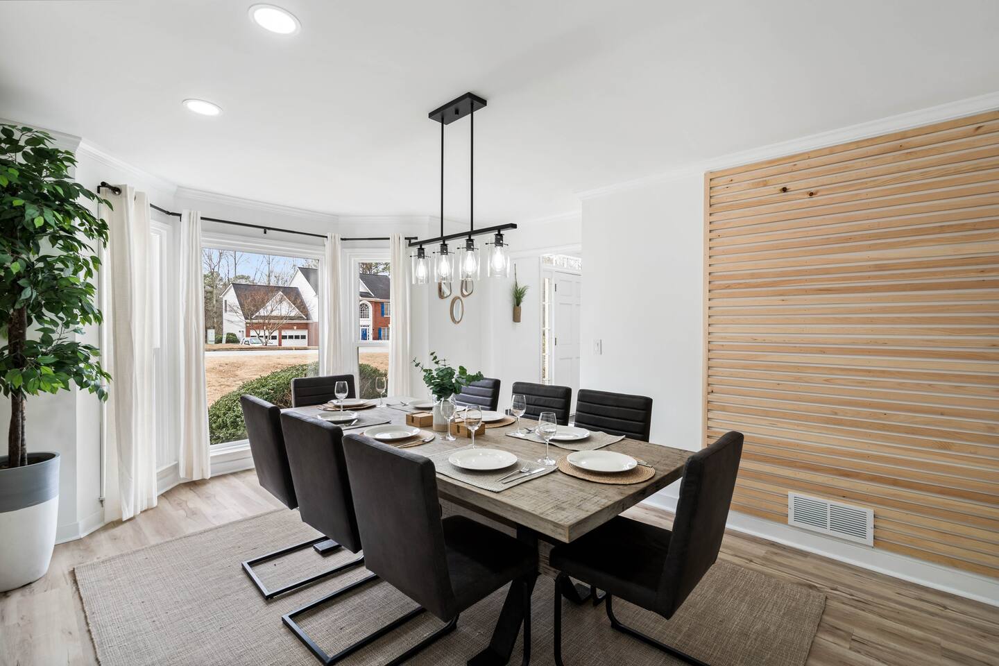 Our beautiful 6-bedroom, 3.5-bathroom home is very roomy (4900 Square Feet!) and great for big families and large, responsible groups of friends. The main 2 levels of the home include 4 bedrooms, 2.5 bathrooms, and a very spacious dining room and kitchen. The basement level of the home includes 1 bedrooms, and 1 bathroom, a game room with with a pool table and wet bar. Fully stocked kitchen and spacious dining area is perfect for some of Atlanta's amazing home cooks.