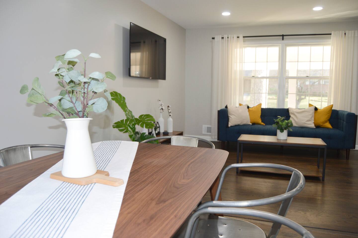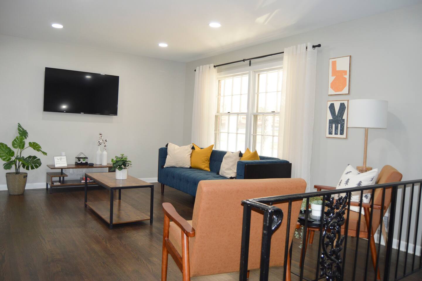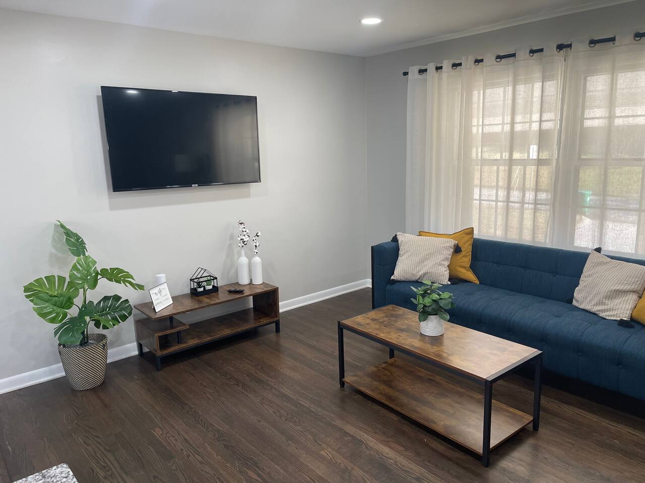 Our home is perfect for large groups looking for lots of space. The home includes 6 beds and can comfortably sleep up to 12 guests. The home features a great living room area with lots of style, technology, and comfort for your stay in Atlanta. We are located on a quiet, tree-filled street 10-15 minutes from downtown and 15-20 minutes from the airport. Check out the rest of our listing description and photos to see what makes our space the perfect home for your stay in Atlanta. We have a total of 4 TVs in the home. We have a 55-inch smart tv with Roku in the living room and we have smart TVs in 3 of the bedrooms. You are welcome to download other apps and use your own credentials to sign in.