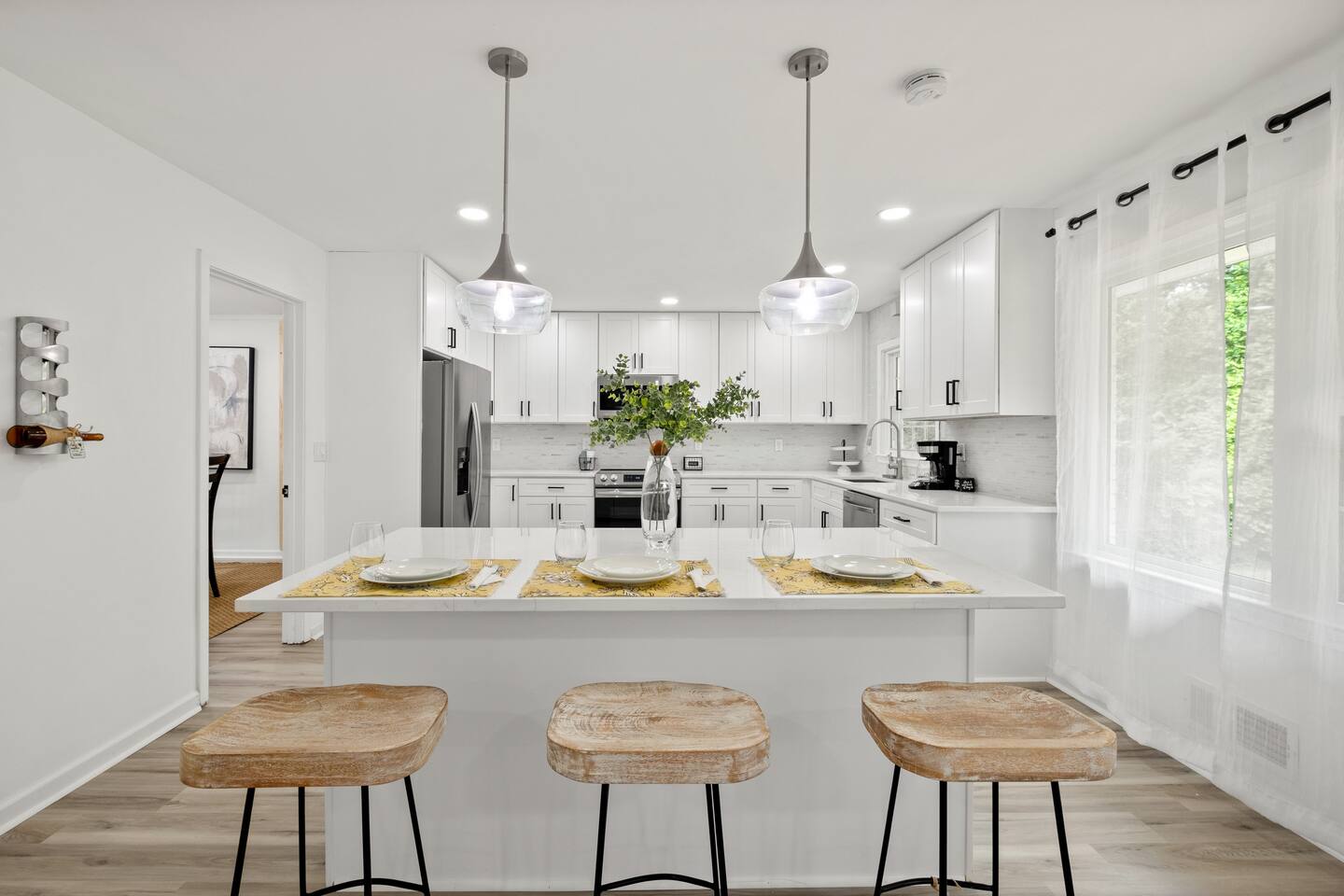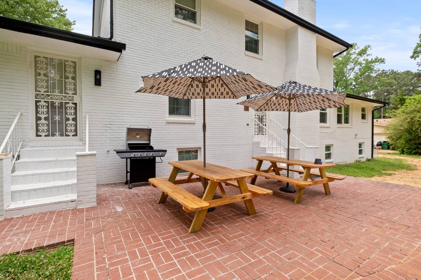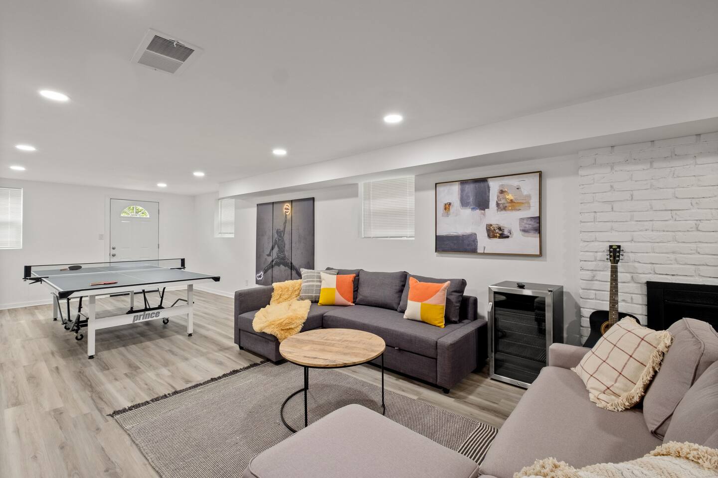 Welcome to Casa Blanca, a spacious six-bedroom, four-bathroom luxury retreat designed for families and groups who want both comfort and entertainment. With more than 4,000 square feet of living space, this home offers room to gather, relax, and create lasting memories—all just minutes from downtown Decatur and Atlanta. Step inside and you’ll find a bright, inviting main level where the open living and dining areas connect seamlessly with a well-equipped kitchen. The large dining table makes mealtimes easy, whether you’re cooking at home or enjoying takeout from one of the nearby restaurants. The real highlight of Casa Blanca is its entertainment space. The finished basement is set up as a full game room, complete with a pool table, ping pong, and arcade-style fun that’s perfect for both kids and adults. After a day exploring Atlanta’s attractions, everyone can come together here to unwind and play. Each of the six bedrooms is furnished with comfort in mind, including 55-inch smart TVs in every room so everyone can enjoy their favorite shows by signing in with their own streaming accounts. Multiple bathrooms make it easy for large groups to get ready for the day without waiting in line. Outside, the home offers a peaceful setting with convenient access to shopping, dining, and major highways. You’re only a short drive to downtown Atlanta, the Georgia Aquarium, Mercedes-Benz Stadium, and the city’s best cultural spots—yet you’ll return home to a quiet neighborhood retreat. Whether you’re planning a family reunion, a getaway with friends, or a group trip for a special event, Casa Blanca delivers the perfect balance of space, style, and entertainment.