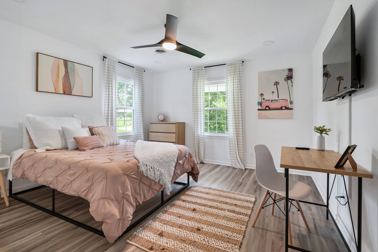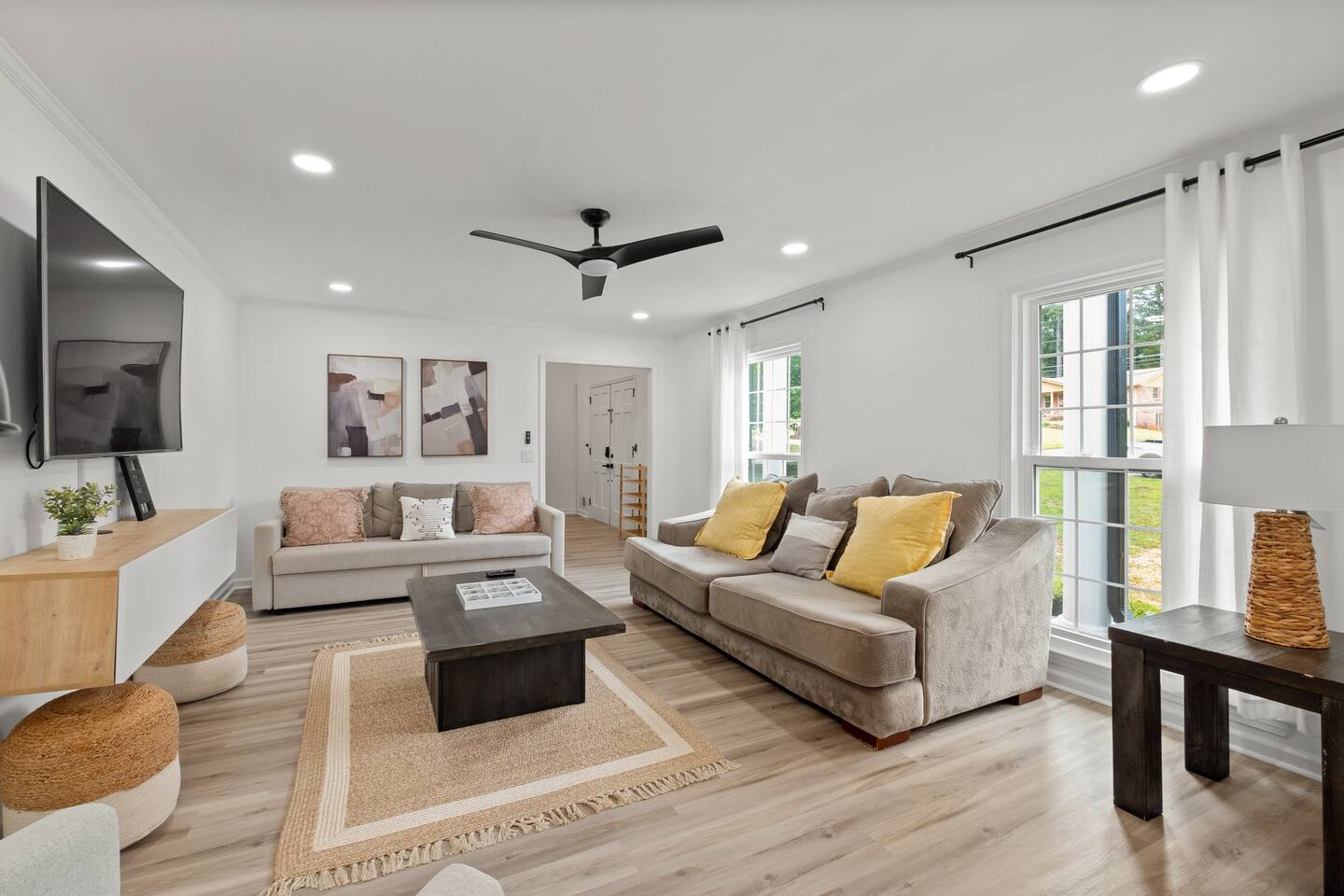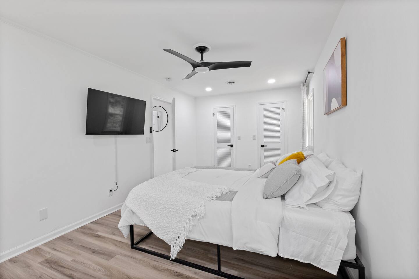 Welcome to Casa Blanca, a spacious six-bedroom, four-bathroom luxury retreat designed for families and groups who want both comfort and entertainment. With more than 4,000 square feet of living space, this home offers room to gather, relax, and create lasting memories—all just minutes from downtown Decatur and Atlanta. Step inside and you’ll find a bright, inviting main level where the open living and dining areas connect seamlessly with a well-equipped kitchen. The large dining table makes mealtimes easy, whether you’re cooking at home or enjoying takeout from one of the nearby restaurants. The real highlight of Casa Blanca is its entertainment space. The finished basement is set up as a full game room, complete with a pool table, ping pong, and arcade-style fun that’s perfect for both kids and adults. After a day exploring Atlanta’s attractions, everyone can come together here to unwind and play. Each of the six bedrooms is furnished with comfort in mind, including 55-inch smart TVs in every room so everyone can enjoy their favorite shows by signing in with their own streaming accounts. Multiple bathrooms make it easy for large groups to get ready for the day without waiting in line. Outside, the home offers a peaceful setting with convenient access to shopping, dining, and major highways. You’re only a short drive to downtown Atlanta, the Georgia Aquarium, Mercedes-Benz Stadium, and the city’s best cultural spots—yet you’ll return home to a quiet neighborhood retreat. Whether you’re planning a family reunion, a getaway with friends, or a group trip for a special event, Casa Blanca delivers the perfect balance of space, style, and entertainment.