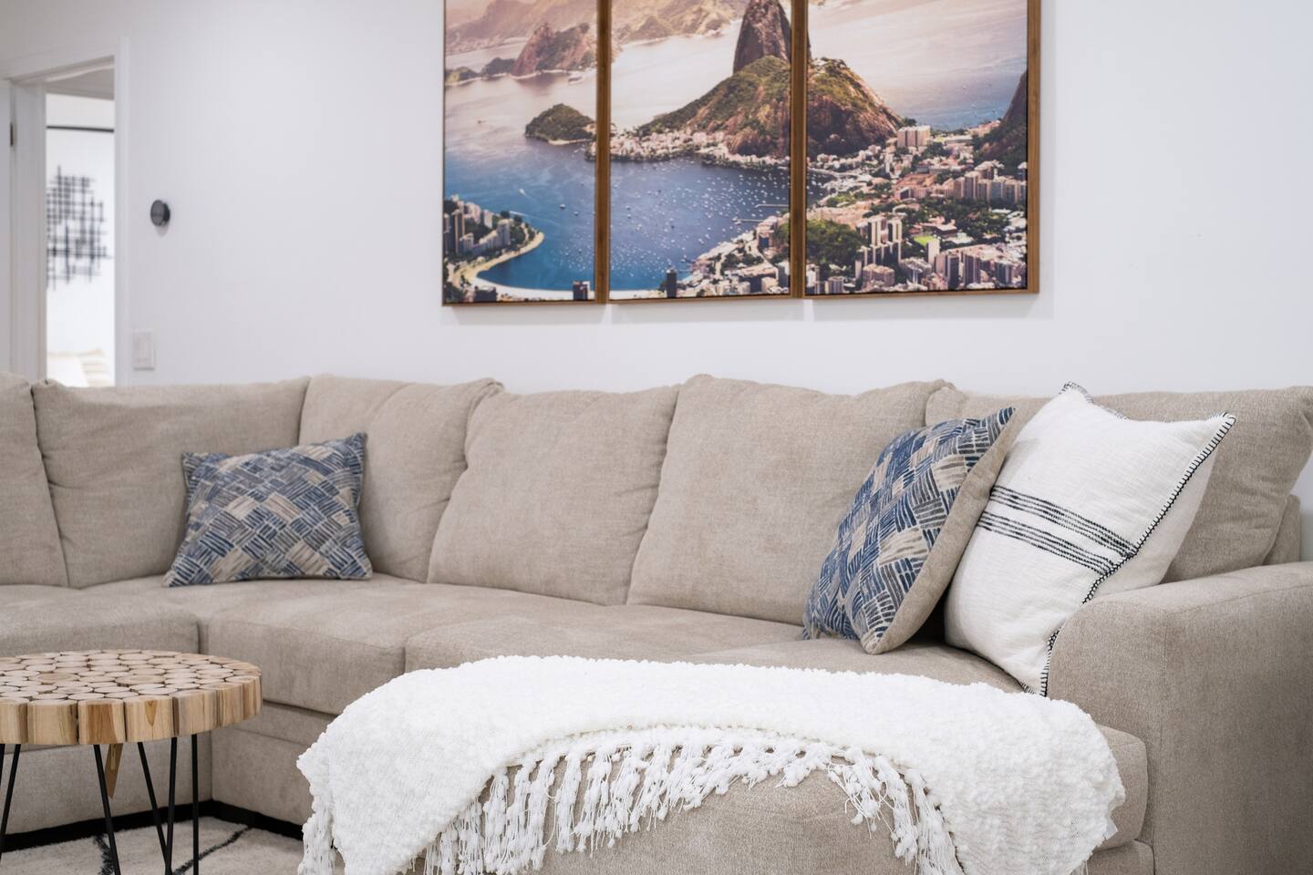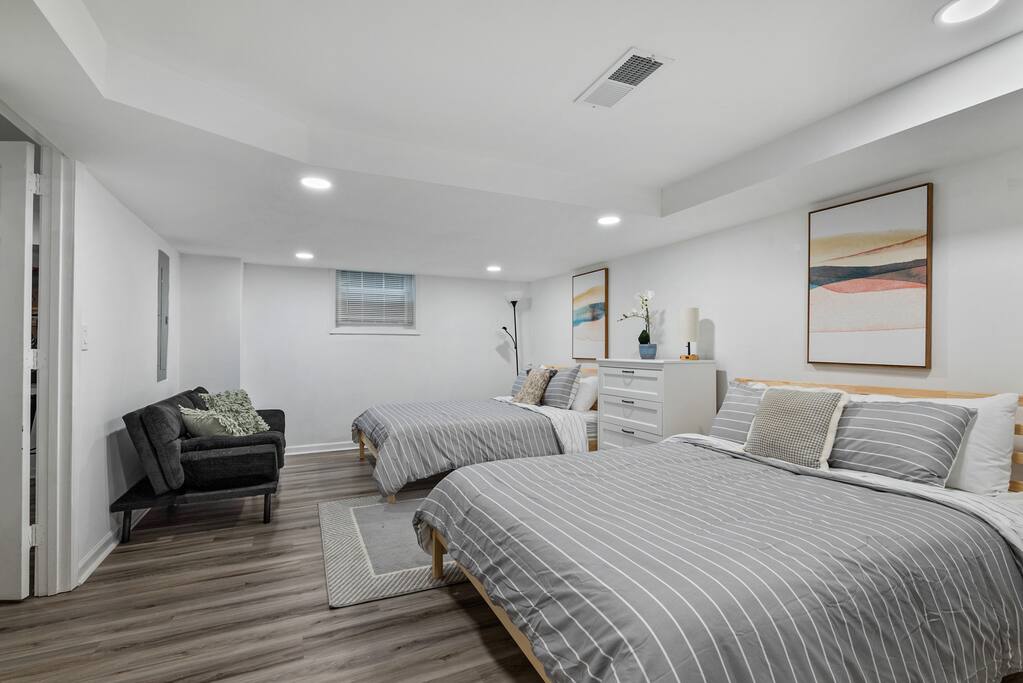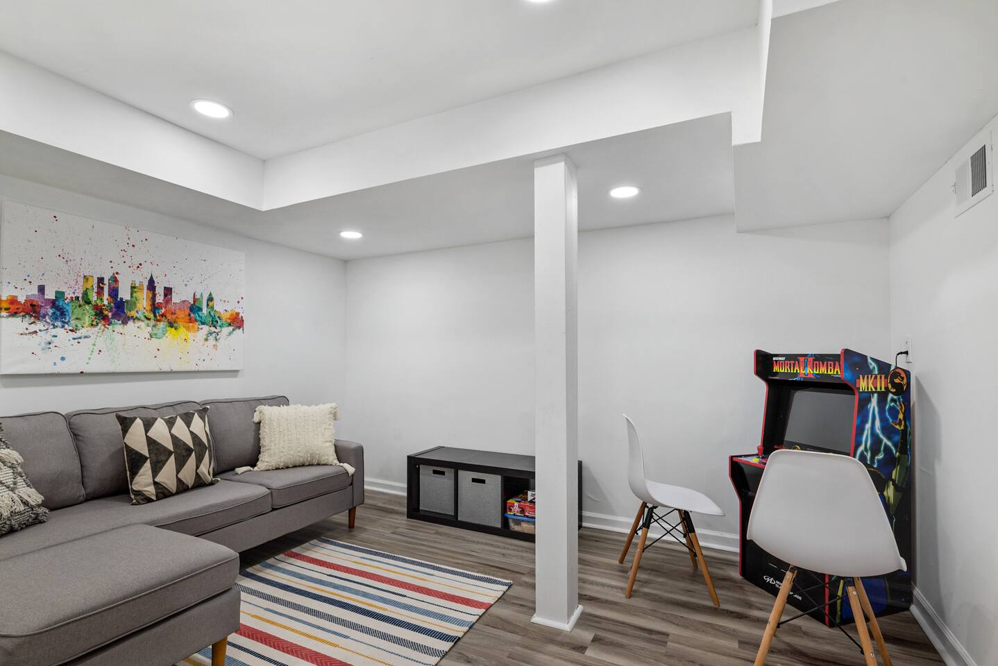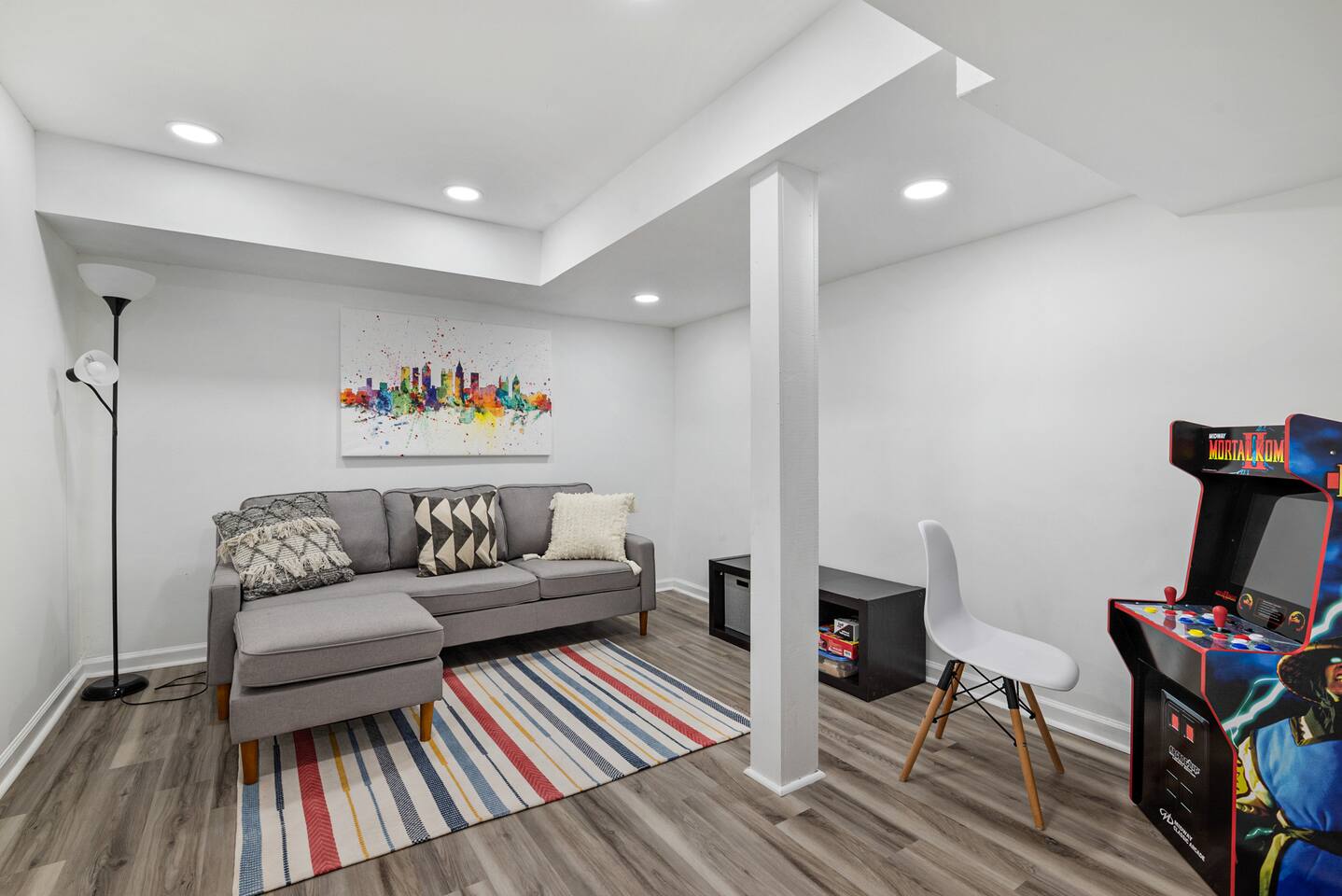 Our beautiful 6-bedroom 4-bathroom home is very roomy (4400 Square Feet!) and great for big families and large, responsible groups of friends. The main 2 levels of the home include 4 bedrooms, 3 bathrooms, 2 living rooms, and a very spacious dining room and kitchen. The basement level of the home includes 2 bedrooms, 2 living rooms, and 1 bathroom. The living room in the basement is gigantic and has a pool table, ping pong table, and old school arcade game Cabinet.
