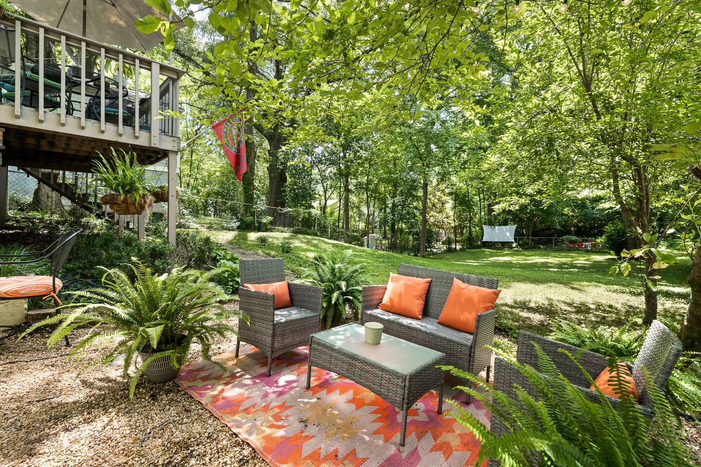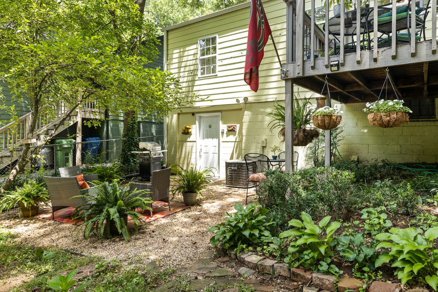 Welcome to your stylish sanctuary in the heart of Atlanta, just steps from the Southside Trail of the Beltline. Recently renovated, our downstairs apartment blends comfort with modern design, featuring an open-concept living area, bedroom with privacy curtain, spacious bathroom, and private patio overlooking a dog-lover’s dream—a huge, fully fenced backyard that’s practically a mini dog park! Amenities Galore: Relax on the plush couch with ultra-fast internet (1,000 Mbps service, delivering ~500 Mbps on our dedicated Airbnb network). Enjoy a touch of nostalgia with our retro Super Nintendo system, perfect for some classic gaming. The kitchenette is equipped with essentials, including a mini-fridge, microwave, coffee maker, and hot plate. Outdoor Luxuries: Step out onto your private patio with views of the expansive backyard—a secure, perfect space for your dog to roam freely. Accessibility & Privacy: The apartment entrance is at the back, accessed through a shared storage room with a separate door for guest privacy. A shared laundry room is also available. Host & Pets: I live upstairs with a foster dog, here on a temporary basis. I’m often available to greet you and offer a personal tour, or you can check in easily via lockbox if needed. Prime Location: Our home is in a peaceful, forested neighborhood near Grant Park and Zoo Atlanta. Explore urban farms and green spaces nearby, or take a quick bike or Uber ride to Atlanta’s vibrant neighborhoods and entertainment venues. Transport: We’re a $10-15, 15-20 minute Uber ride from the airport, and just 10 minutes/$5-10 to downtown. The closest MARTA station (MLK JR) is about a mile away. Please Note: Though soundproofing was added during renovations, our 1940s house retains some natural sound. Earplugs are provided for lighter sleepers, and I’m here to assist if needed.