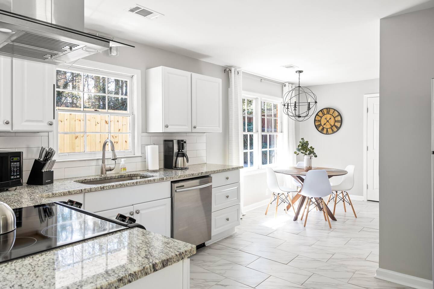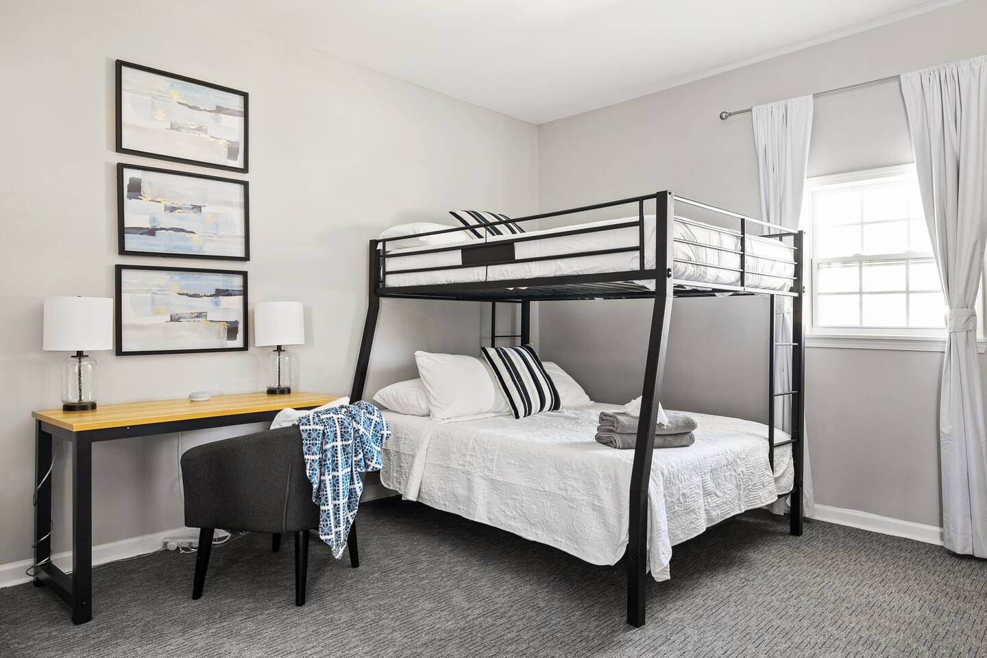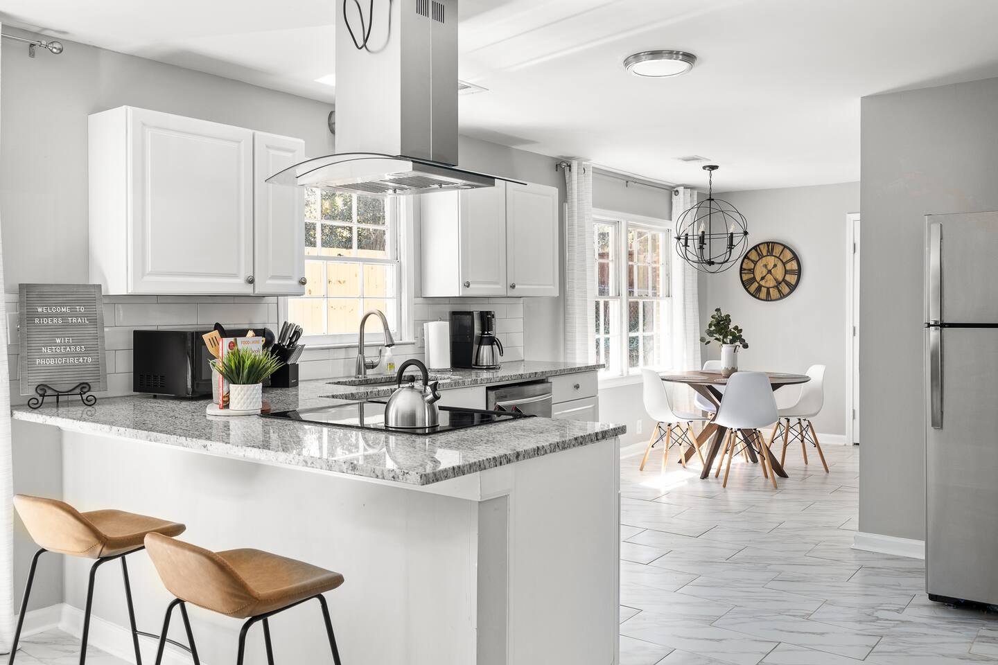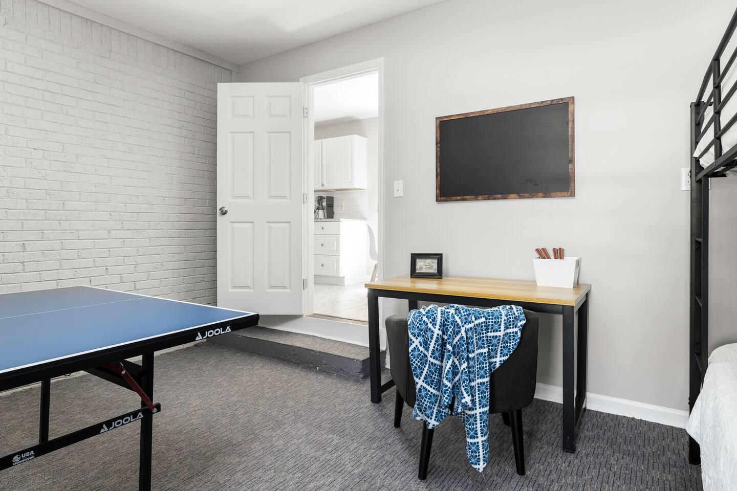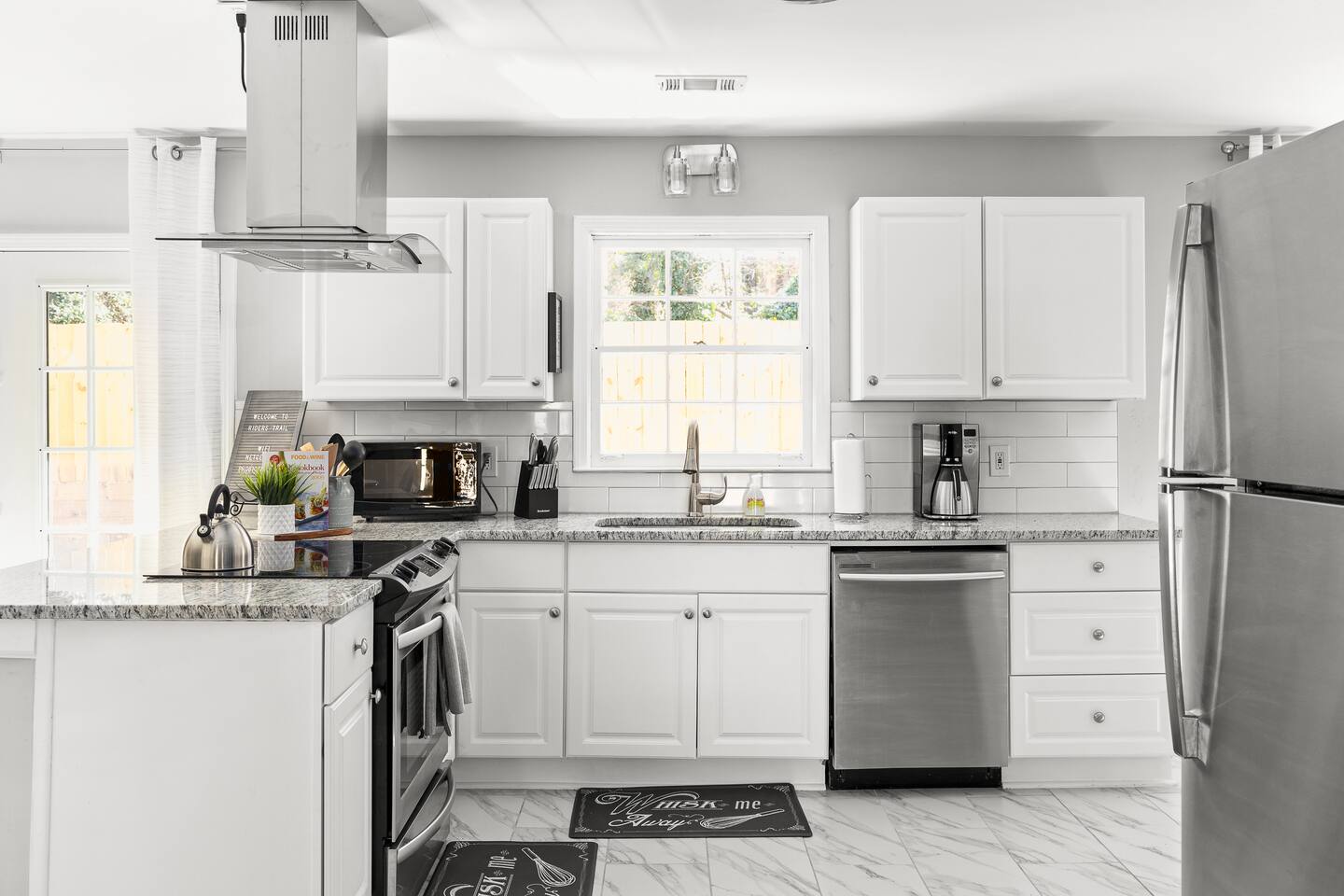 Our newest home is perfect for large groups and families looking for lots of space to spread out. Our home features a giant open concept kitchen with brand new everything. We have a large 8 person dining room table, 4 person kitchen dining table, and counter seating for serving large meals.