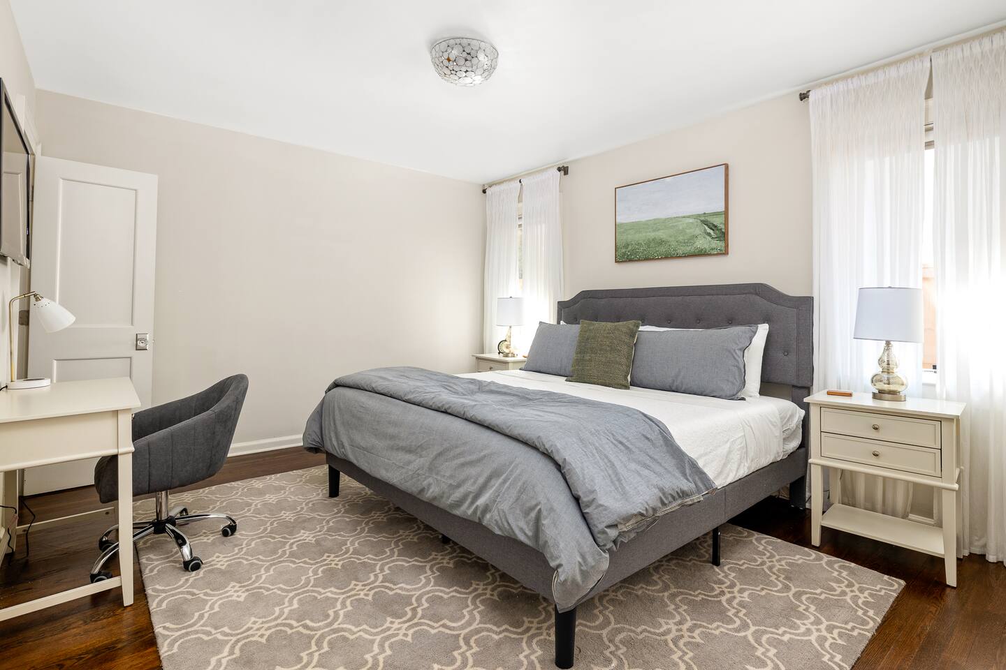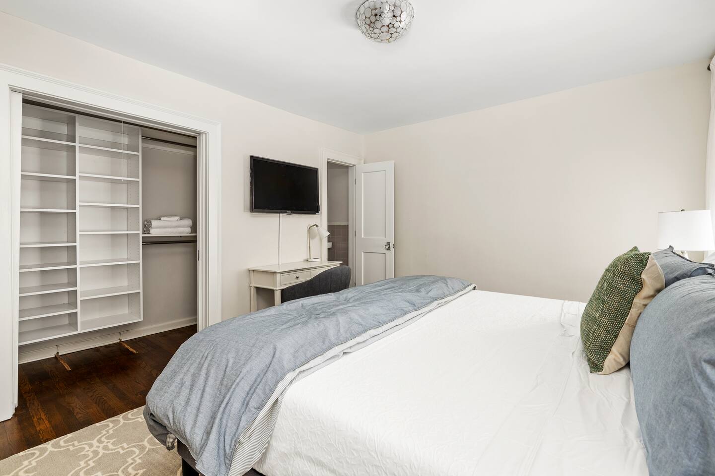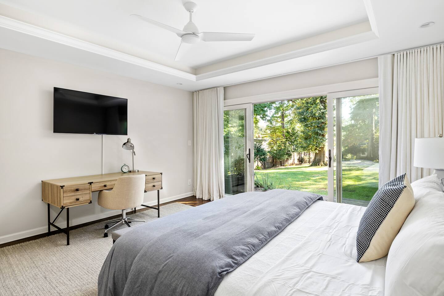 Welcome to your stylish retreat in historic Decatur — a spacious, newly renovated home designed with families, large groups, and business travelers in mind. Nestled on a quiet street just minutes from Atlanta’s top attractions, this property combines modern luxury with warm, inviting comfort. Step inside to an open-concept living space where sunlight pours in through wide windows. The living room flows into the dining and kitchen area, creating the perfect setting for gathering over dinner, a glass of wine, or a favorite show on the sofa after a day exploring Atlanta. The kitchen is fully equipped for cooking and conversation — with pots, pans, cutlery, baking sheets, and pantry basics. A fresh pot of coffee or tea awaits each morning, setting the tone for your adventures ahead. Slide open the doors to your private backyard patio — a tree-filled oasis ideal for morning yoga, quiet reading, or evening drinks under the stars. Retreat to one of four thoughtfully designed bedrooms. The main master suite features a king bed with ultra-soft linens, a private deck, and a spa-like bathroom with a standalone tub. A second master offers another king bed with its own half bath and desk space. Additional bedrooms provide both comfort and flexibility, with twin beds and a full bed for families and groups. Each room is appointed with plush bedding, 4K TVs, and workspaces when you need them. Practical touches — including a large laundry room and parking for up to two cars in the carport — make extended stays easy and comfortable. From this central location, you’re minutes from Emory, Agnes Scott College, downtown Decatur’s restaurants and shops, and only 15 minutes to downtown Atlanta landmarks like Mercedes-Benz Stadium and the Georgia Aquarium. Midtown and Georgia Tech are just a short drive away, and the airport is 20 minutes from your door. We recommend renting a car to enjoy the best of the city, though rideshare services are also readily available. As locals living just down the street, we take pride in sharing this home with you and ensuring your stay is seamless.
