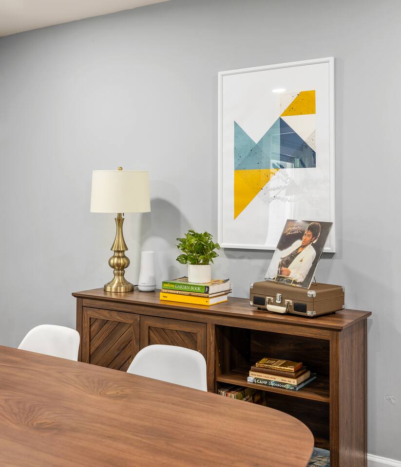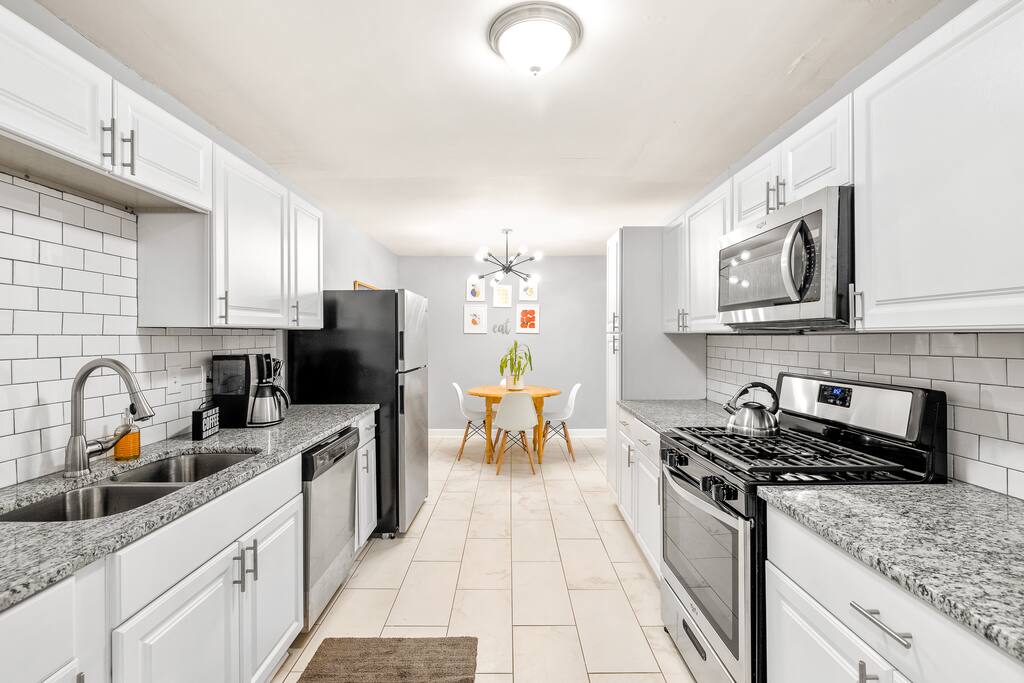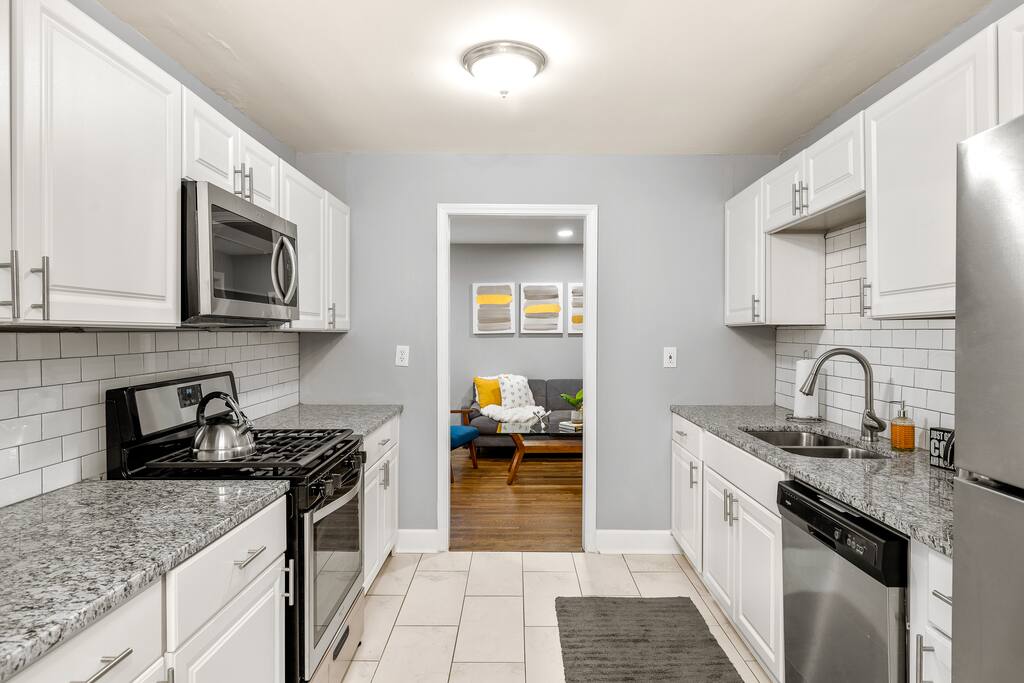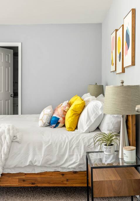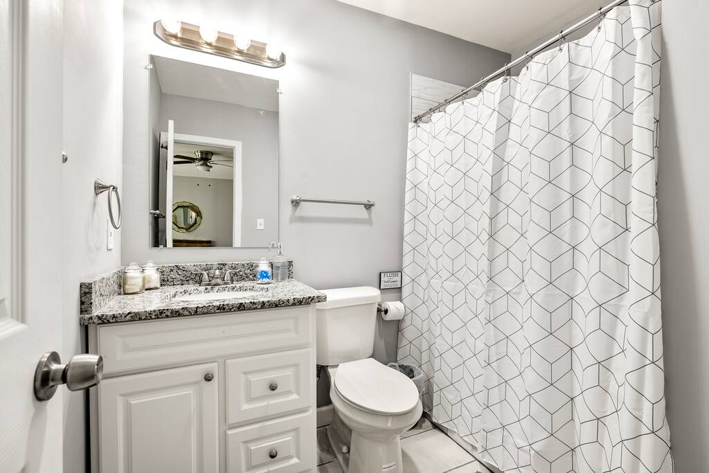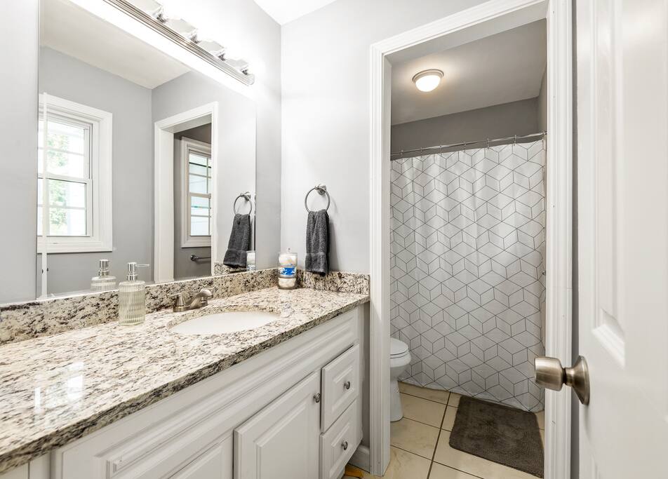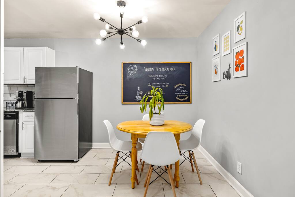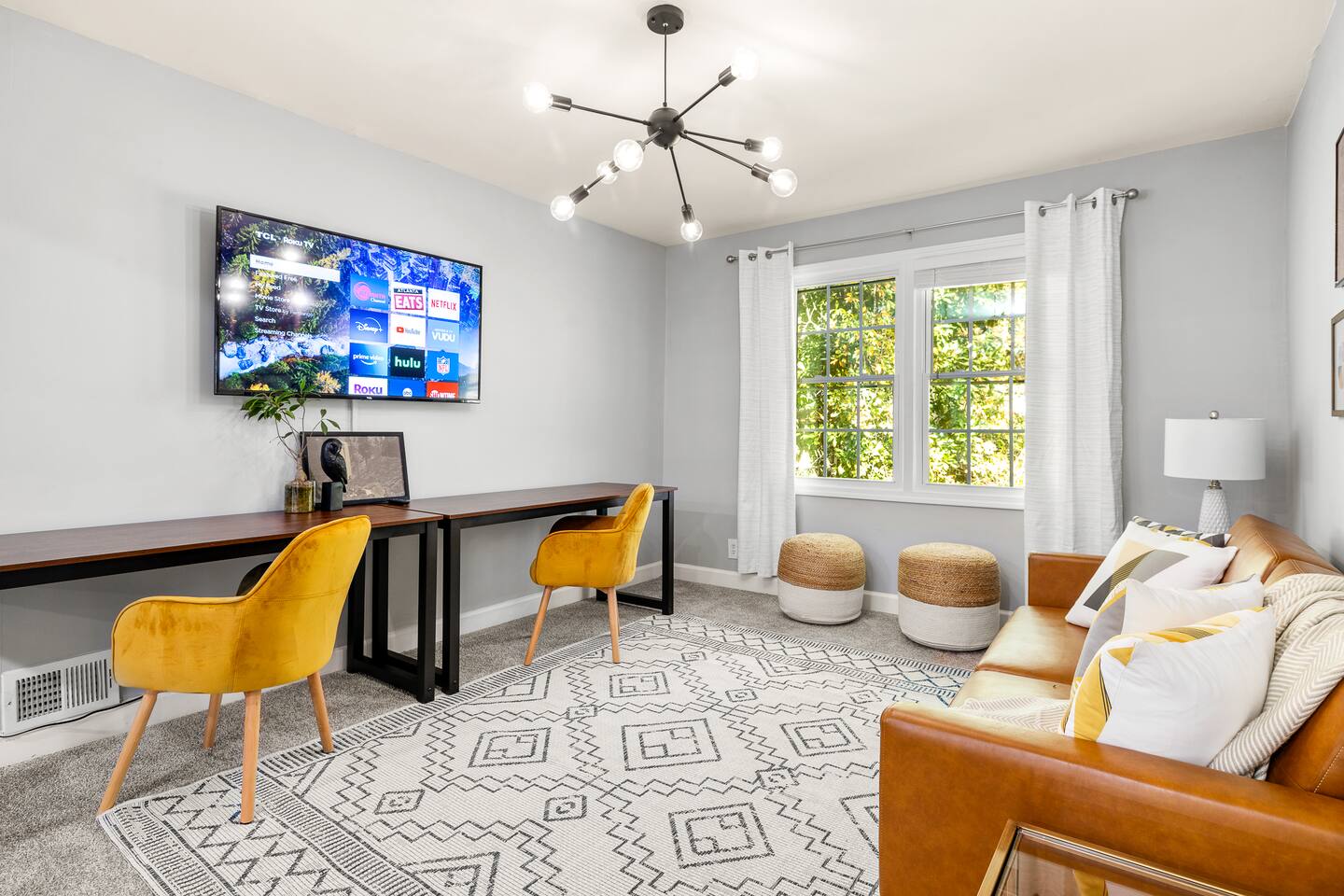 Our historic Southwest Atlanta home was completely renovated and designed from the ground up to be the perfect place to call home for your stay in Atlanta. Our home features 4 bedrooms (with 3 full bathrooms) and multiple living room areas so your group/family has plenty of space to relax in. We’ve also added lots of style and technology throughout the home like HD smart TVs (Netflix, VEVO, Disney Plus), Gword Nest Minis, an even record player with a ton of records. Our fully stocked kitchen includes everything you need to cook a feast and large dining room table with enough seating for 8 (the table in the kitchen has seating for an additional 4). Outdoor Space: The patio located in the back yard has lots of seating and string lights to use at night. We suggest enjoying a meal or beverage outside since the weather in Atlanta is nice most of the year. Feel free to bring a croquet set or a ball to throw around. We also have a 5 burner gas grill you can use to grill out. Parking: Our driveway has space for four visitors. Additional cars will have no trouble finding free street parking. Our home features two 55-inch HD Smart TVs in each of the two living rooms. There are also 3 HD Smart TVs in 3 of the bedrooms. All the Smart TVs have Roku and are signed into Netflix, HBOMax, and Disney+. Guests can also log into their own streaming services via the Roku interface.