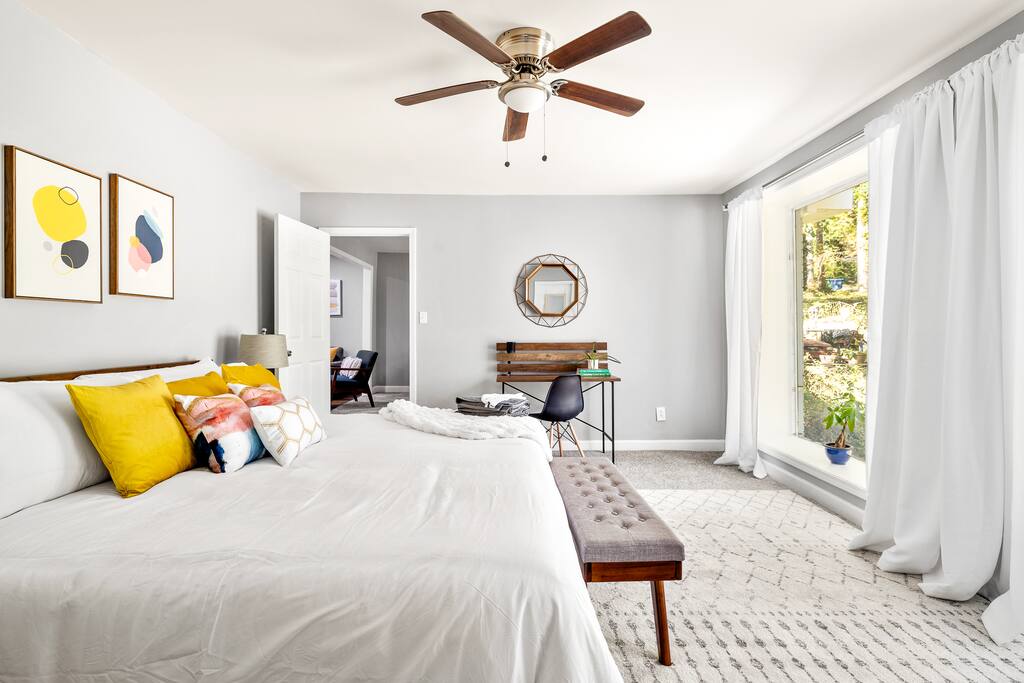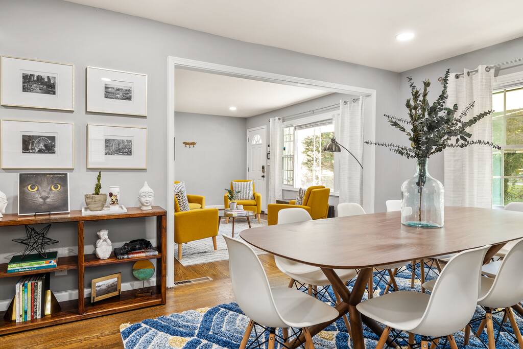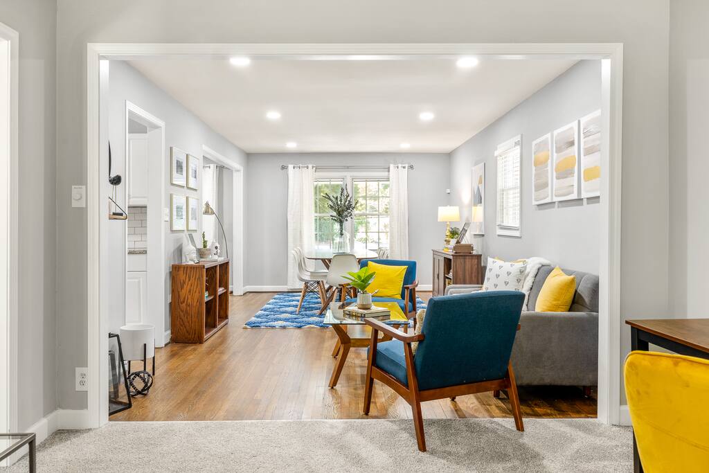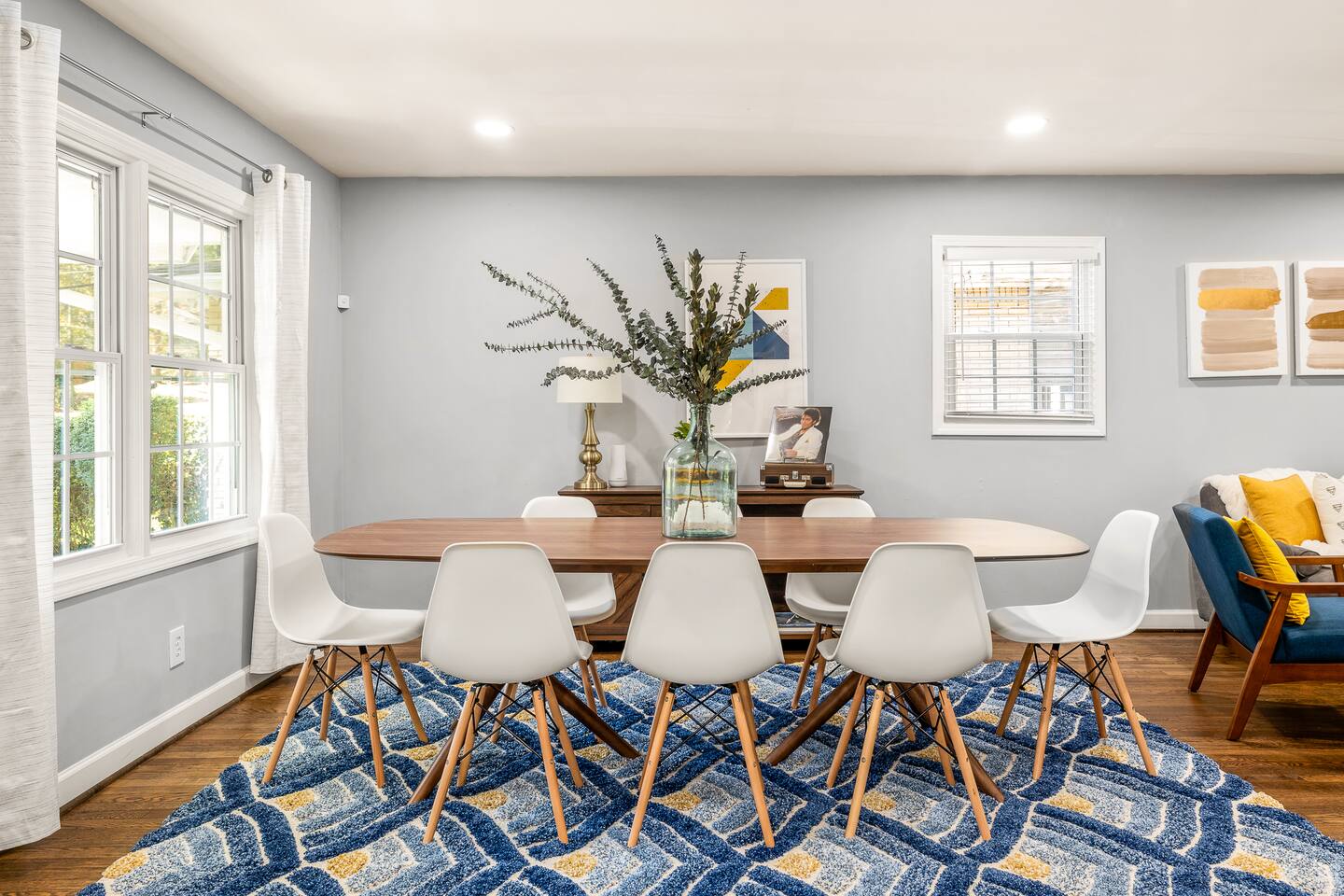 Our newly renovated home is perfect for groups and families looking for a comfortable and stylish stay in Atlanta. Our home features 3 living rooms, 2 dining areas, as well as a large patio and backyard for our guests to enjoy. The expertly designed space features lots of style, technology, and comfort that make our home unique. Even though our home is on a quiet and tree filled neighborhood, we are only 5-10 minutes from downtown, 20 minutes from the airport, and 10 min to Six Flags.
