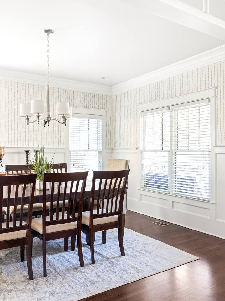 The star of this home is the large dining room and kitchen. The home features two side by side professional grade ovens, a wet bar, formal dining room for 8, bar seating for 6, and breakfast table that seats 4. The upstairs features 3 very large bathrooms with gigantic closets in each room. Master features a huge tub. Large front porch on front and back of house is great for hanging and out and enjoying the neighborhood. Main Floor: The front door opens into an open concept living/kitchen/dining area which will be the main hang-out area during your stay. The living room has lots of seating and a 55 inch smart TV. The living room also features a large vinyl collection and a record player. The kitchen includes lots of cooking gear and a nice array of spices & oil. A coffee maker, filters, and coffee are provided. There are enough plates, glasses, bowls, and silverware to serve 16. The dining room has seating for 16, the kitchen dining room table has seating for 4, and the kitchen bar has seating for 2. The main level of the home has 4 bedrooms and 2 bathrooms. There are 4 bedrooms and three and a half bathrooms located in the home. 2 of the bedrooms feature queen beds and the master bedroom has a king bed with a private bathroom. There is also a bedroom with 2 twin beds. All but two of the bedrooms feature a smart TV. Outdoor Space: Porches on the front and back of the house with lots of seating. We suggest enjoying a meal or beverage outside since the weather in Atlanta is pretty nice most of the year. Parking: There is a driveway with 6 parking spots that you may use at all times. Additional cars will have no trouble finding free street parking.