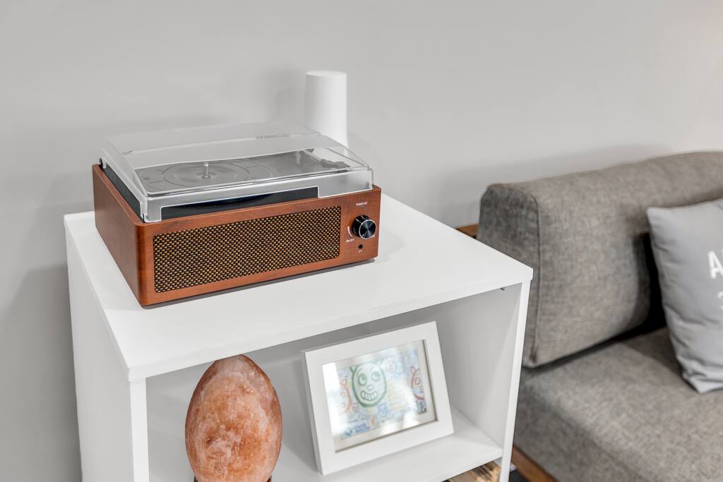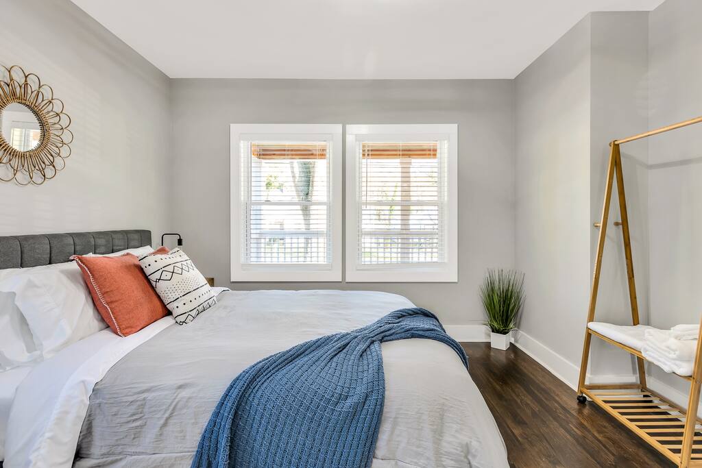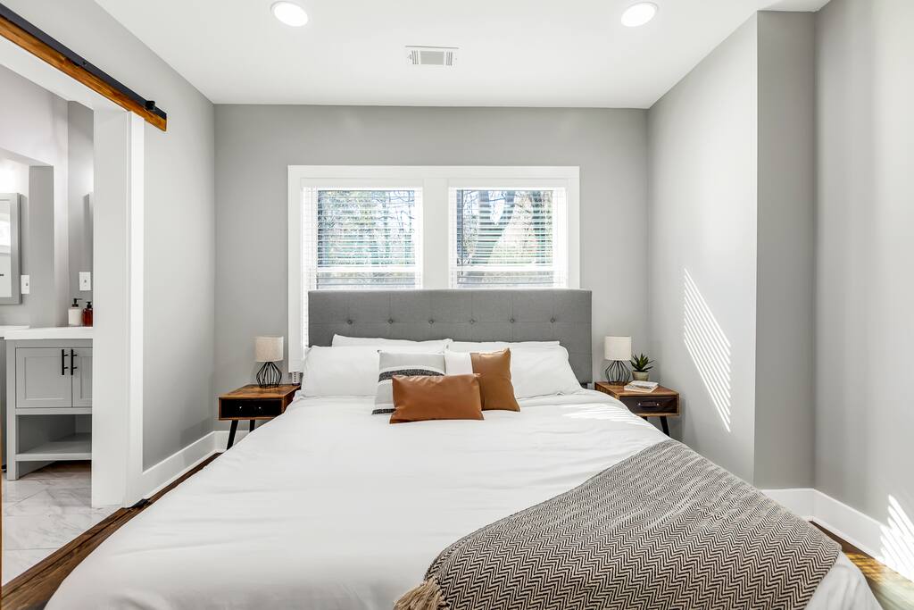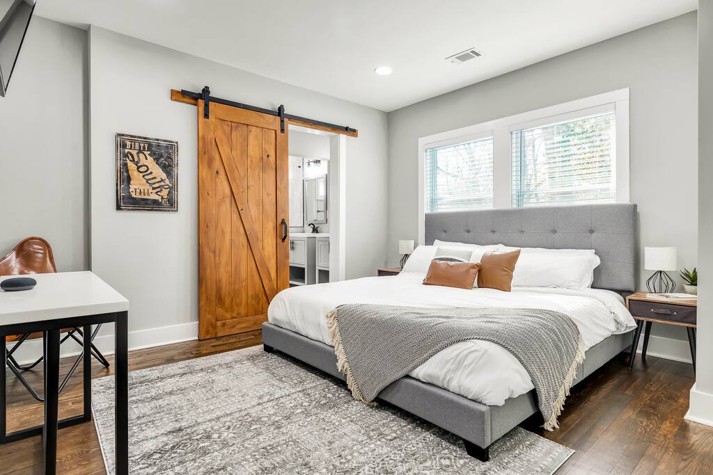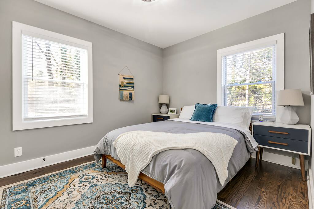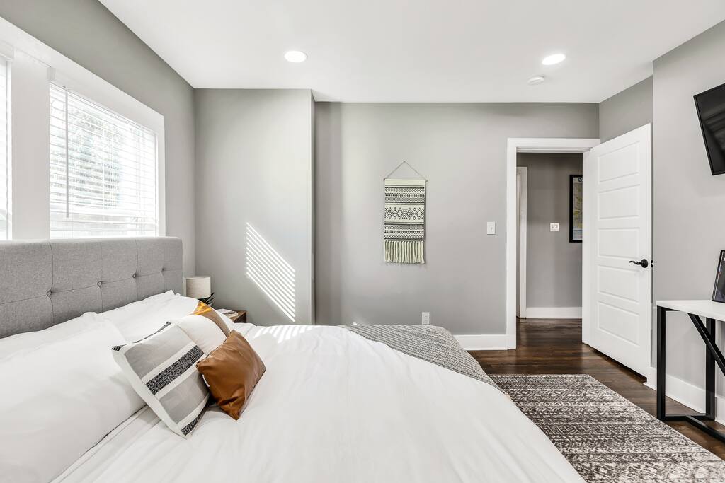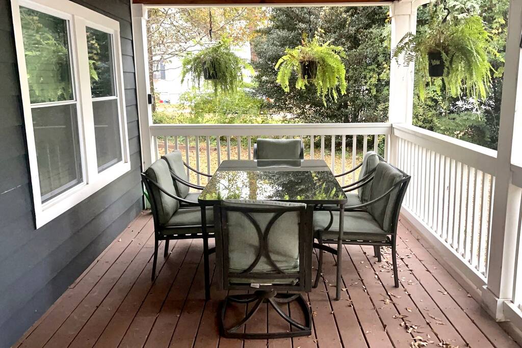 The front door opens into a roomy living/kitchen/dining area which will become the main hang-out area. The living room has lots of seating and a 55-inch smart TV with Roku. The living room also features a large vinyl collection and a record player. The kitchen includes lots of cooking gear and a nice array of spices & oil. A coffee maker, filters, and coffee are provided. There are enough plates, glasses, bowls, and silverware to serve 6. There are three bedrooms and two bathrooms located in the home. 2 of the bedrooms feature queen beds and the master bedroom has a king bed with a private bathroom. Bed Summary: We recently partnered with Serta to feature their brand new iComfort Hybrid mattress in each of our bedrooms. If you want to purchase after you try we have a special discount you can use! Our home features 1 King bed and 2 Queen beds. Outdoor Space: The highlight of our home is definitely our large front porch. We have a patio table with seating for 6 and 4 Adirondack chairs perfect for enjoying morning coffee or an evening beverage. We suggest enjoying a meal outside since the weather in Atlanta is nice most of the year. Parking: There is a driveway with 3 parking spots that you may always use. Additional cars will have no trouble finding free street parking. Our home features a total of 2 HD Smart TVs with Roku signed into Netflix, HBOMax, and Disney+. Guests can also log into their own streaming services via the Roku interface. There is a smart TV located in the master bedroom.