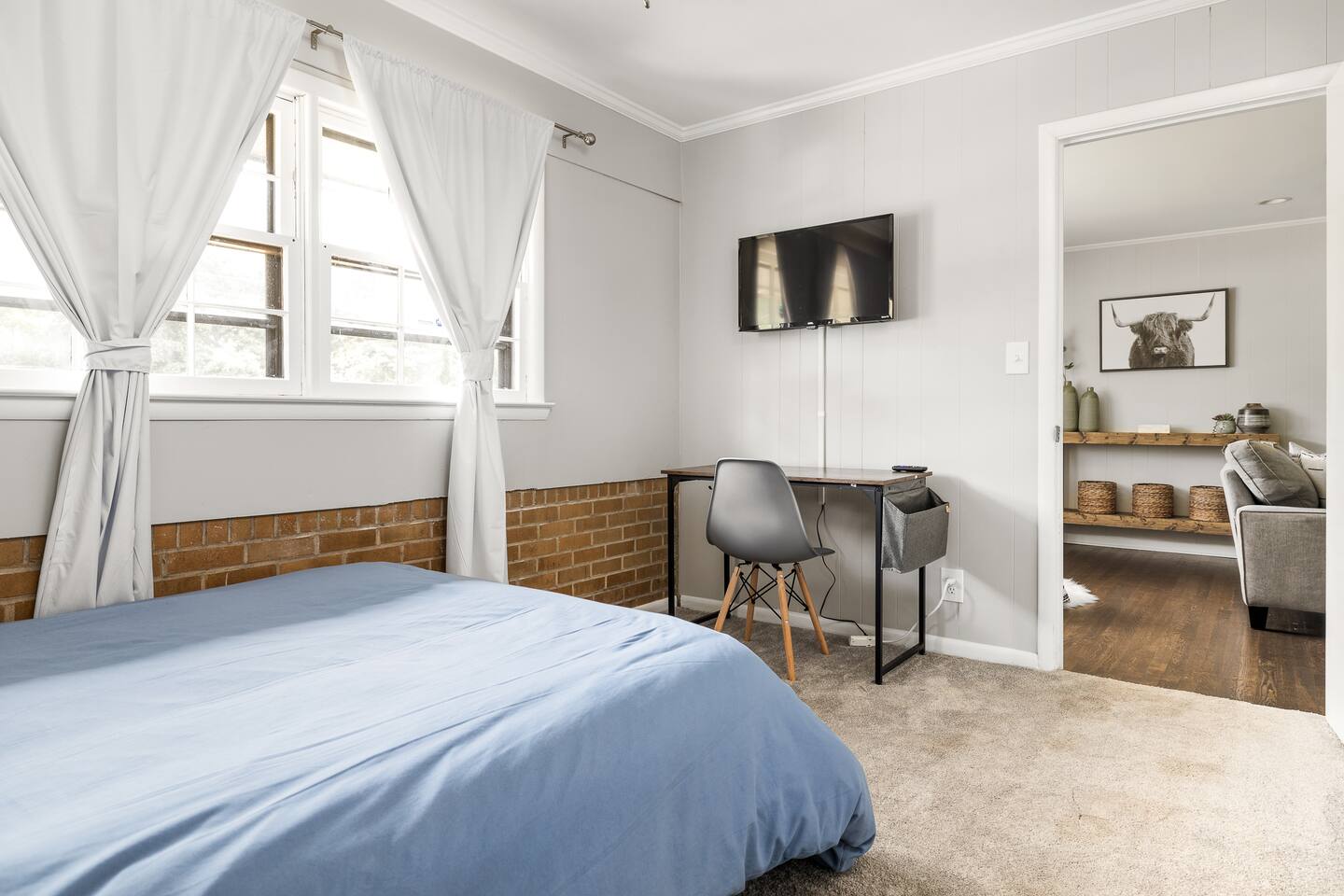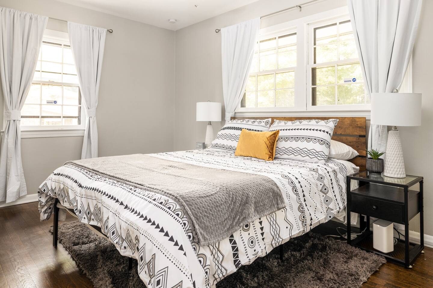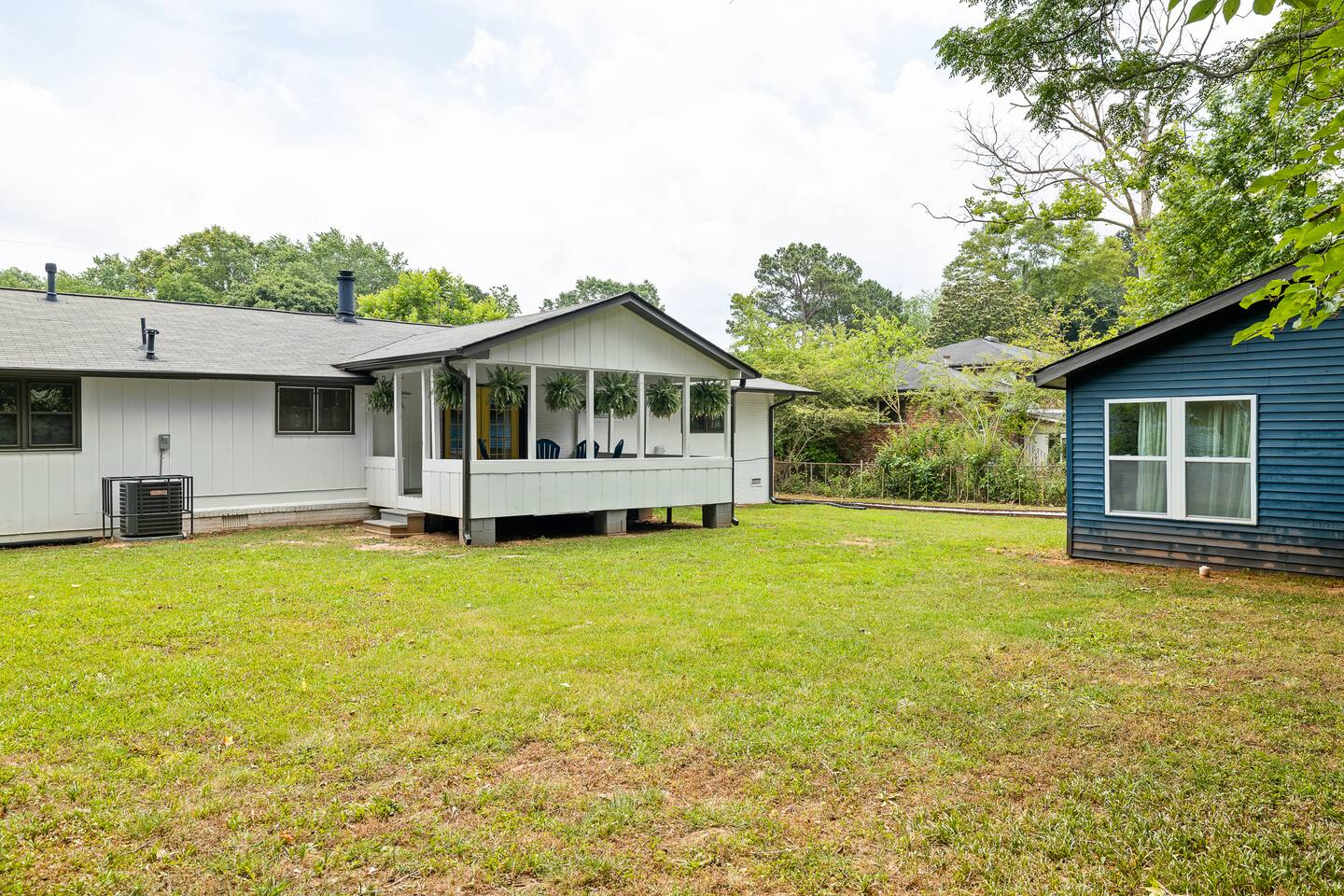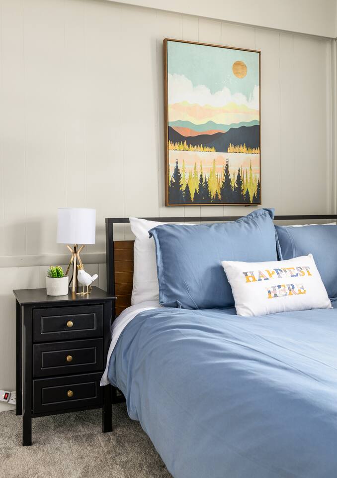 Welcome to our contemporary haven, a perfect blend of modern technology and home comforts. This property features a main unit with 4 bedrooms and a stylish tiny house, both nestled in a serene environment. Main House: Modern Comforts & Outdoor Bliss -Four Luxurious Bedrooms: Each room boasts a super comfortable queen bed, ensuring a restful sleep for all guests. -Two Elegant Bathrooms: Modern, fully-equipped bathrooms to cater to your needs. -Spacious Covered Back Porch: Ideal for outdoor dining or relaxing, this giant porch is perfect for enjoying the outdoors in comfort. -High-Tech Living: The house is fitted with the latest technology, ensuring a seamless and convenient stay. Chic Tiny House: Stylish and Self-Contained -Cozy Living Room: A snug space to unwind, with tech amenities for entertainment. -Fully-Equipped Kitchen: Everything you need to prepare meals, just like at home. -Comfortable Bedroom with Queen Bed: A private retreat within the tiny house. -Full Bathroom: A complete bathroom, providing additional privacy and convenience. Ample Parking with Covered Carport -Extensive Driveway Parking: Plenty of space for multiple vehicles. -Covered Carport: Protect your car from the elements. Ideal for Families or Groups This property is perfect for larger groups or families, offering a combination of communal areas and private spaces. The main house and tiny house together provide ample room, ensuring everyone has their own space. Book Your Unforgettable Stay Today! Experience the perfect mix of modern luxury, technological convenience, and unique charm in our distinctive rental. Ideal for those who value comfort, style, and the latest in home technology!