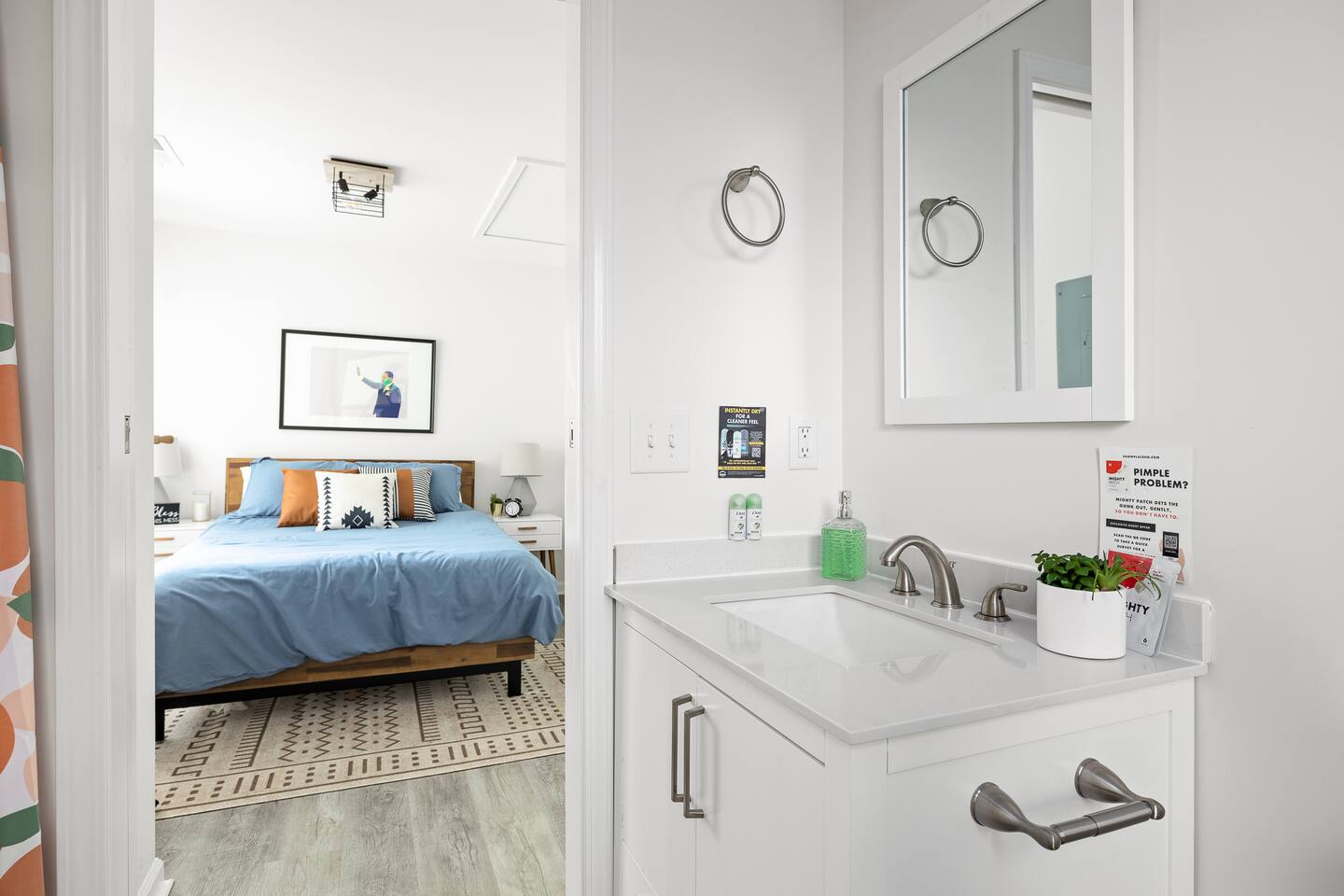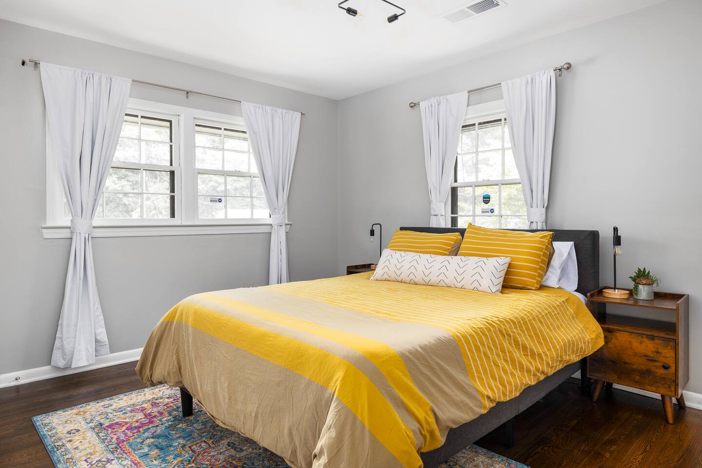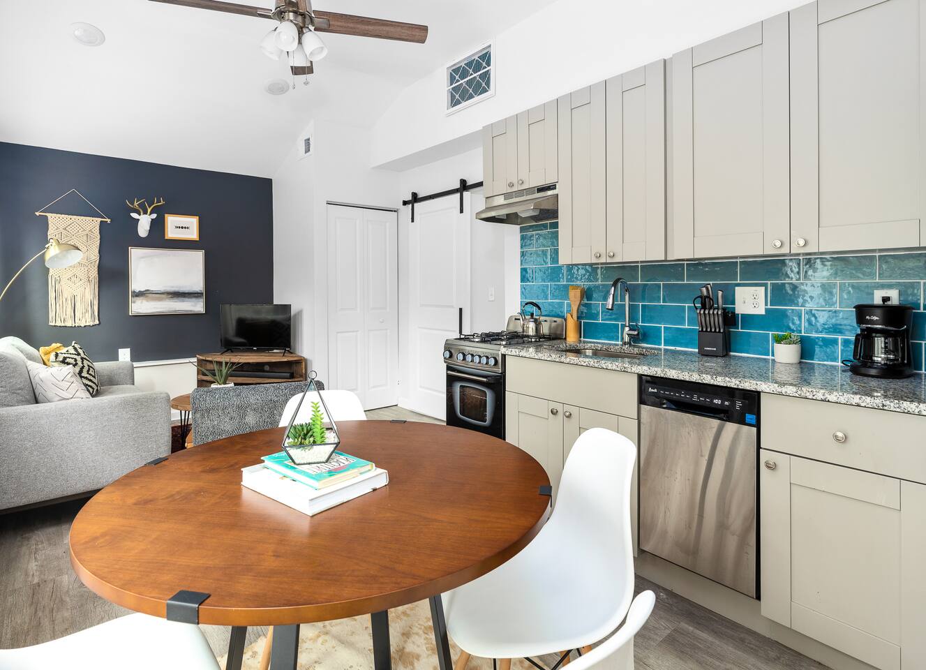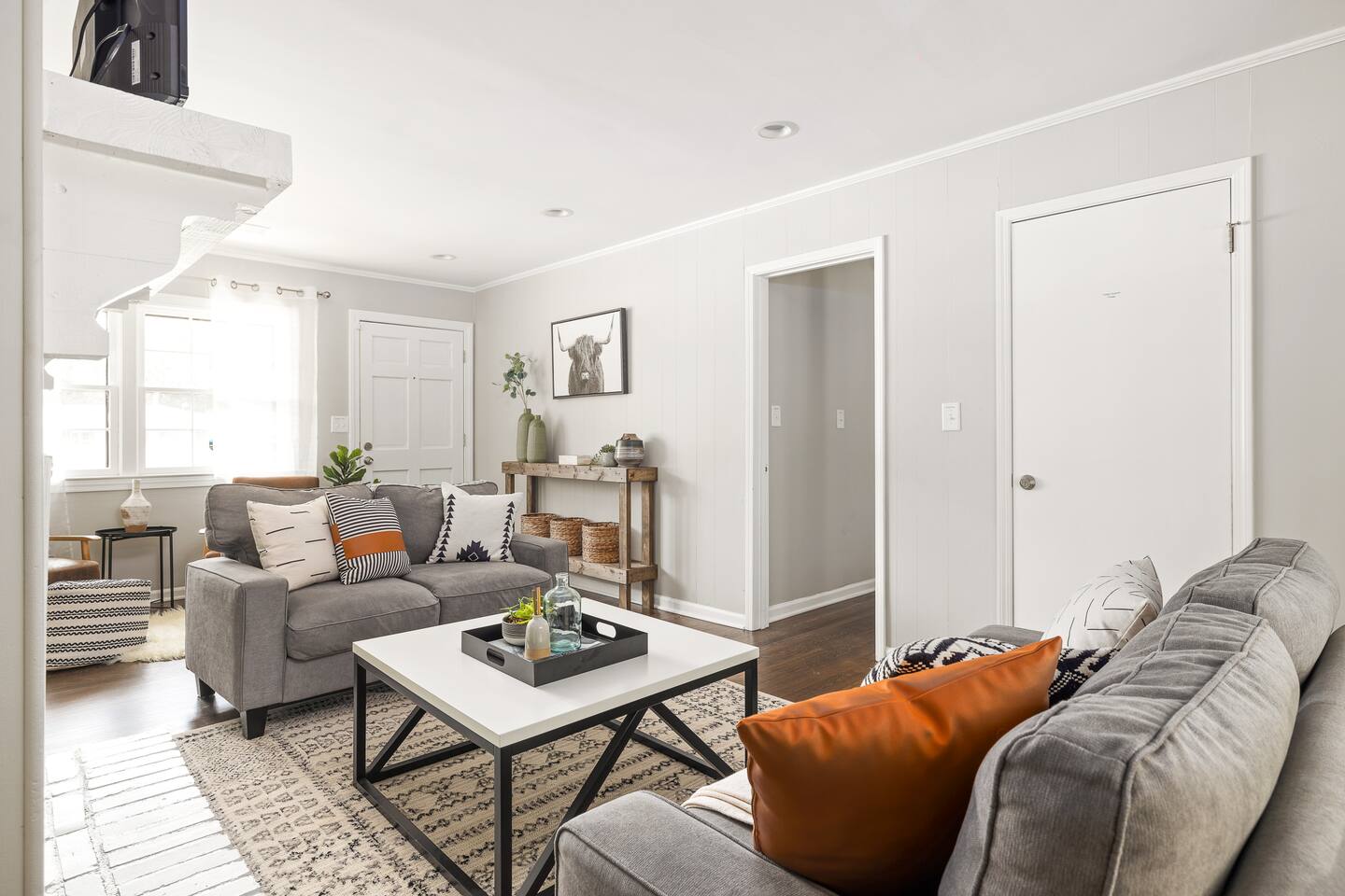 Welcome to our contemporary haven, a perfect blend of modern technology and home comforts. This property features a main unit with 4 bedrooms and a stylish tiny house, both nestled in a serene environment. Main House: Modern Comforts & Outdoor Bliss -Four Luxurious Bedrooms: Each room boasts a super comfortable queen bed, ensuring a restful sleep for all guests. -Two Elegant Bathrooms: Modern, fully-equipped bathrooms to cater to your needs. -Spacious Covered Back Porch: Ideal for outdoor dining or relaxing, this giant porch is perfect for enjoying the outdoors in comfort. -High-Tech Living: The house is fitted with the latest technology, ensuring a seamless and convenient stay. Chic Tiny House: Stylish and Self-Contained -Cozy Living Room: A snug space to unwind, with tech amenities for entertainment. -Fully-Equipped Kitchen: Everything you need to prepare meals, just like at home. -Comfortable Bedroom with Queen Bed: A private retreat within the tiny house. -Full Bathroom: A complete bathroom, providing additional privacy and convenience. Ample Parking with Covered Carport -Extensive Driveway Parking: Plenty of space for multiple vehicles. -Covered Carport: Protect your car from the elements. Ideal for Families or Groups This property is perfect for larger groups or families, offering a combination of communal areas and private spaces. The main house and tiny house together provide ample room, ensuring everyone has their own space. Book Your Unforgettable Stay Today! Experience the perfect mix of modern luxury, technological convenience, and unique charm in our distinctive rental. Ideal for those who value comfort, style, and the latest in home technology!