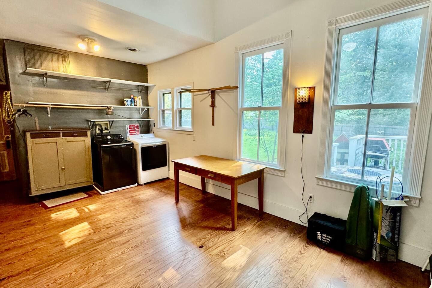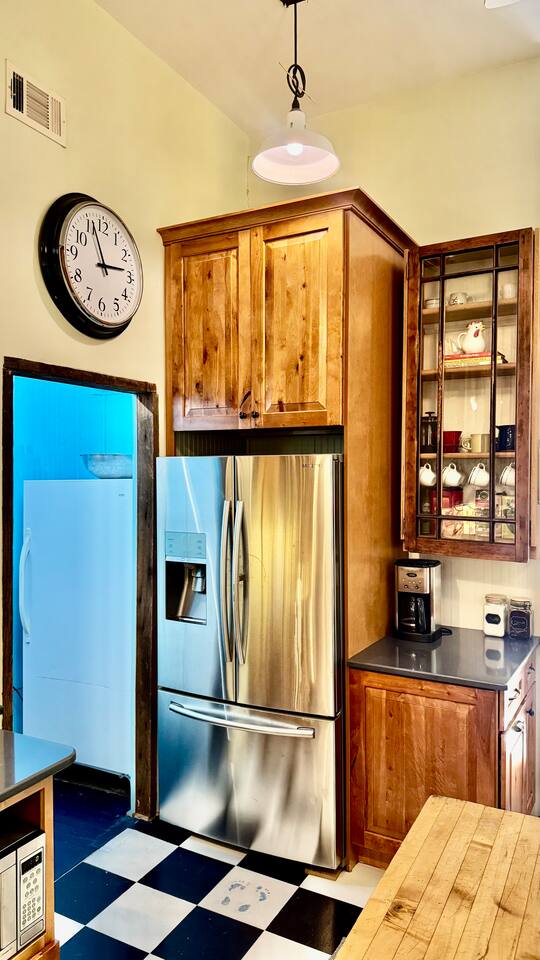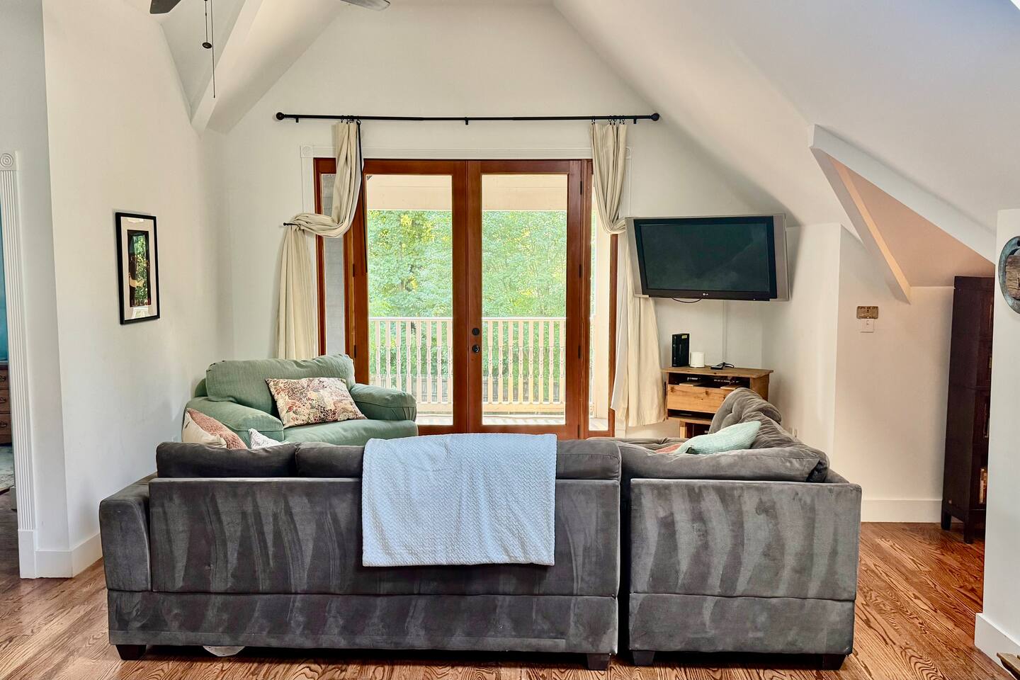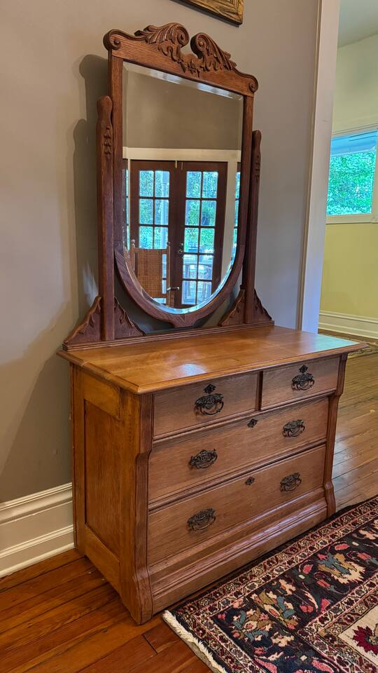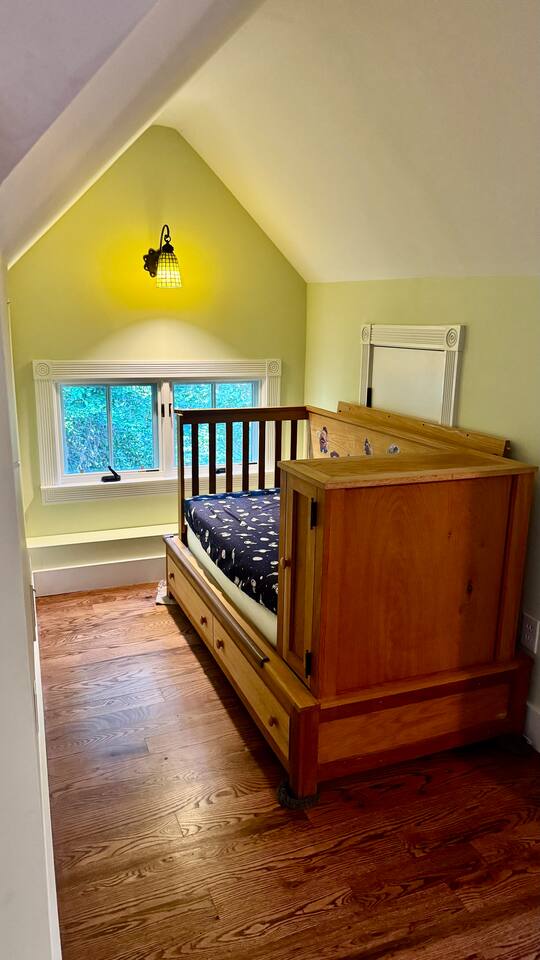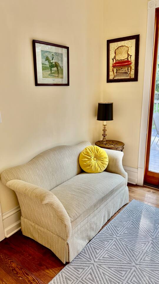 - Bedrooms & Baths: 4 bedrooms (1 king suite, 2 queens, 1 bunk room with crib), each with its own full bathroom (4 full baths total). Sleeps 8+ comfortably in beds. - Spacious Living Areas: 3 separate living spaces – a grand living room, a quiet study/office, and an airy upstairs family room – provide plenty of room to relax or work without disturbing each other. - Historic Charm & Décor: Authentic Queen Anne Victorian architecture with 12-ft ceilings and hardwood floors. Furnished with antique pieces, hundreds of books, and unique vintage touches that give the home a warm, historic character. - Gourmet Kitchen & Dining: Fully equipped chef’s kitchen with handmade cabinetry, quartz countertops, and high-end appliances (36" gas range, French-door fridge, dishwasher). Walk-in pantry with second fridge and utility sink. Formal dining room behind 10-ft pocket doors seats up to 10 for memorable group meals. - Modern Amenities: High-speed gigabit Wi-Fi and multiple Smart TVs for your streaming needs. Central heating & A/C for year-round comfort. In-unit washer and dryer for laundry. Level-2 EV charger in the detached garage to charge electric vehicles. Security system and keyless entry for peace of mind. - Outdoor Paradise: Huge 1.3-acre fenced yard with mature magnolia and fruit trees, a basketball court, and a 100+ year-old rebuilt barn adding rustic charm. Expansive wraparound front porch and back patio with seating – perfect for morning coffee or evening cocktails while enjoying the garden views. - Prime Location: Located in walkable Kirkwood, a historic Atlanta neighborhood. Steps from the Kirkwood Urban Forest Preserve (nature trails and community garden) and direct access to the PATH trail connecting to Atlanta’s BeltLine. Walk to Kirkwood Village restaurants, cafes, and Pullman Yards arts district. Short drive or bike to Little Five Points, Decatur, and other intown neighborhoods. Easy access to MARTA transit and major roads, yet tucked on a quiet street with no through-traffic. - Ideal For Groups: Perfect for families (kids’ bunk room, playset, toys, and crib provided), remote work (multiple workspaces and fast internet), or creative projects like film shoots and corporate retreats (ample space and unique backdrops). An optional 1BR/1BA carriage house apartment above the garage can be rented additionally for larger groups or added privacy.