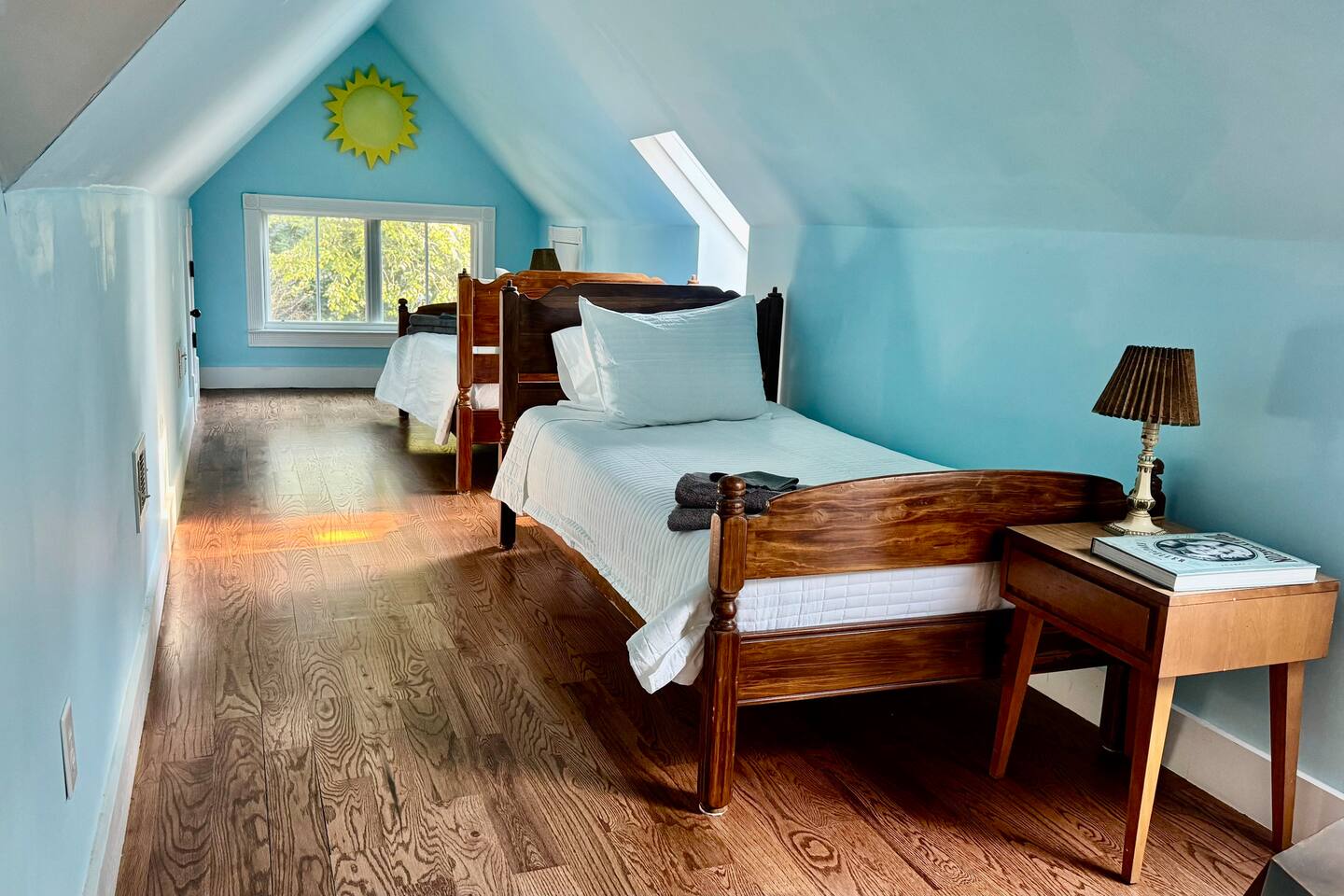 Stay in a stunning 4BR Queen Anne Victorian in Atlanta’s historic Kirkwood. Relax on the wraparound porch under magnolia trees, cook in the chef’s kitchen with handmade cabinets, or enjoy 12-ft ceilings, antiques, and hundreds of books. The huge backyard has a basketball court, rebuilt 100-yr barn, and private PATH trail access. Perfect for families, remote workers, film crews, and retreats—just minutes to Little Five Points, Pullman Yards, and Downtown.