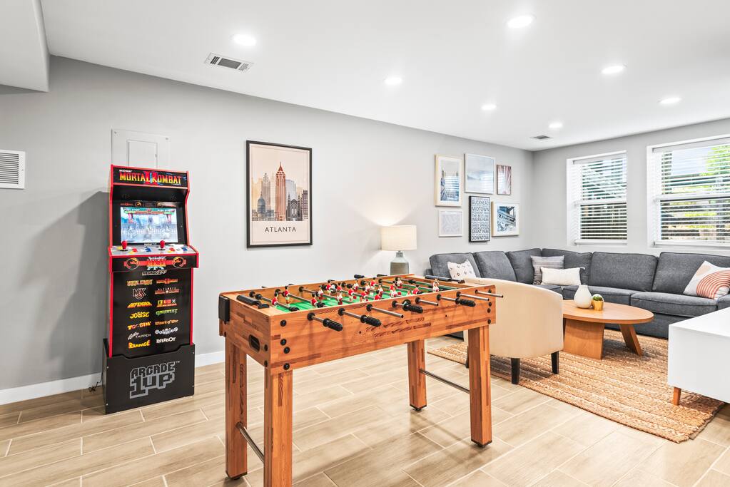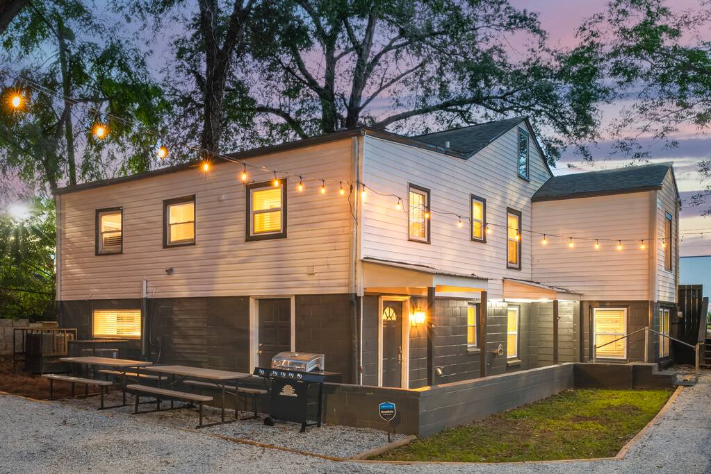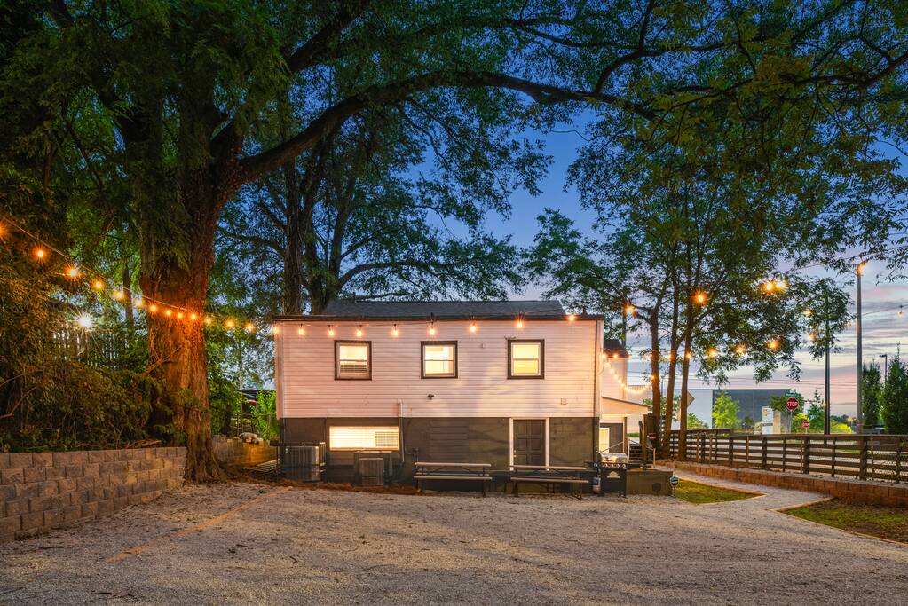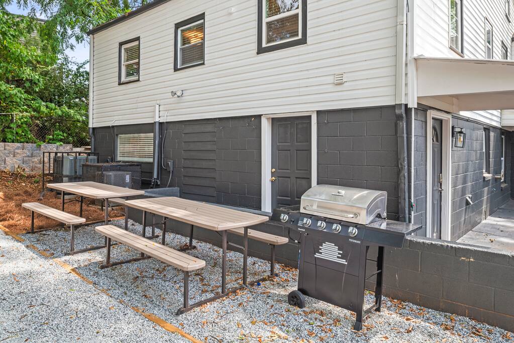 This large house features 6 bedrooms (upstairs: 1 king + 2 queens; downstairs: 3 queens). Additionally, you’ll find 2 bathrooms upstairs and 2 bathrooms downstairs. We have added picnic tables outside, and off-street parking that can accommodate 4 cars. This location can’t be beat! Quick access to I-20 gets you anywhere in Atlanta within minutes, and there’s even a grocery store right across the street! It is a short 12-min walk or 3-min drive to downtown Kirkwood featuring restaurants, shops, and coffee shops. Edgewood shopping center is less than 5 mins drive, where you'll find Target, Kroger, Lowe’s, and even more shops and restaurants! - 9 mins to Mercedes Benz Stadium - 12 mins to GA World Congress Center - 8 mins to Zoo Atlanta - 9 mins to GA Aquarium (Times are without traffic, but Atlanta gets busy on weekends, so give yourself plenty of time!)