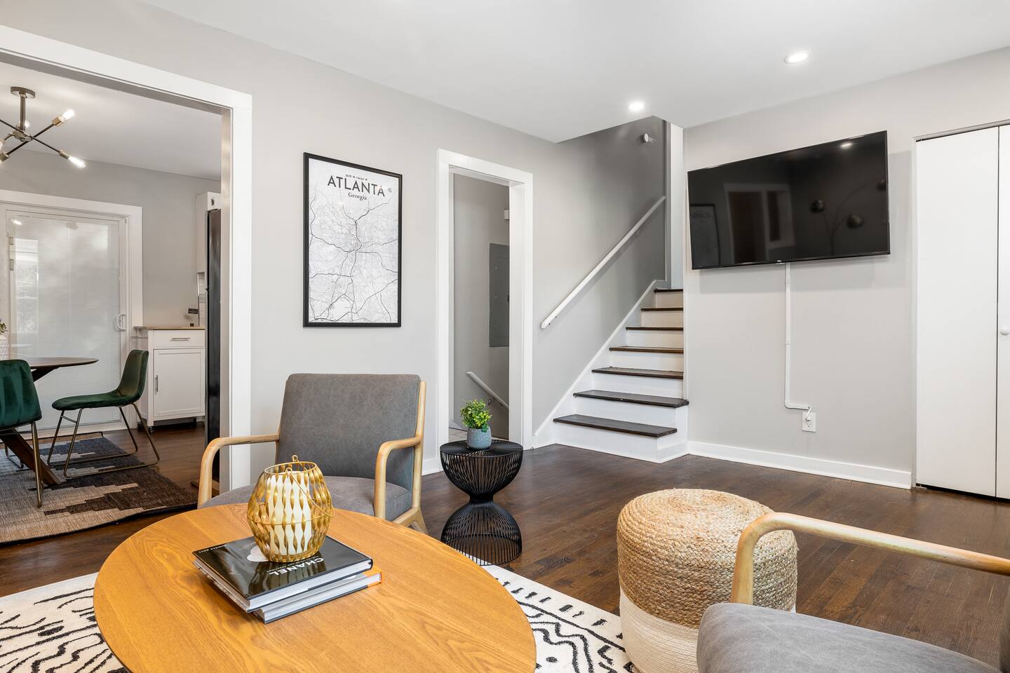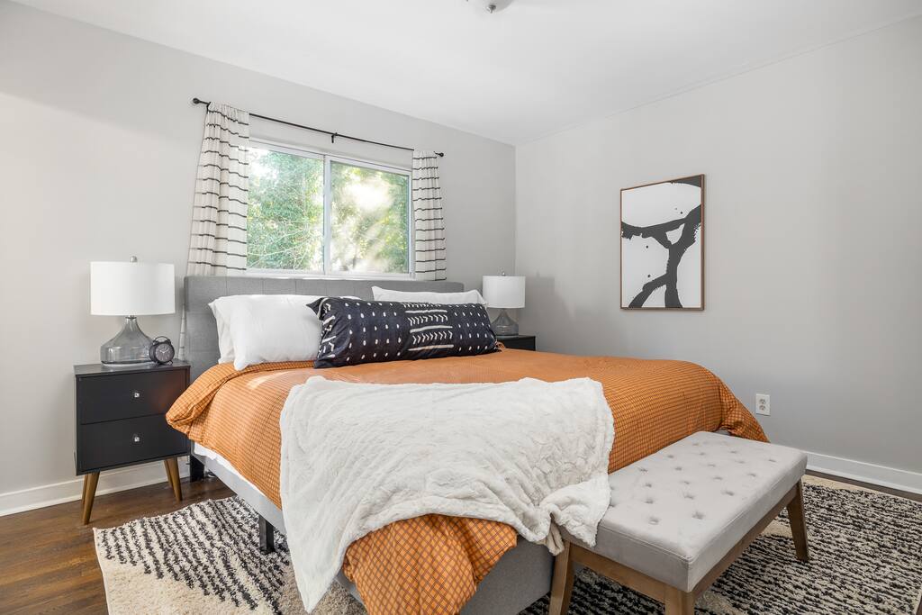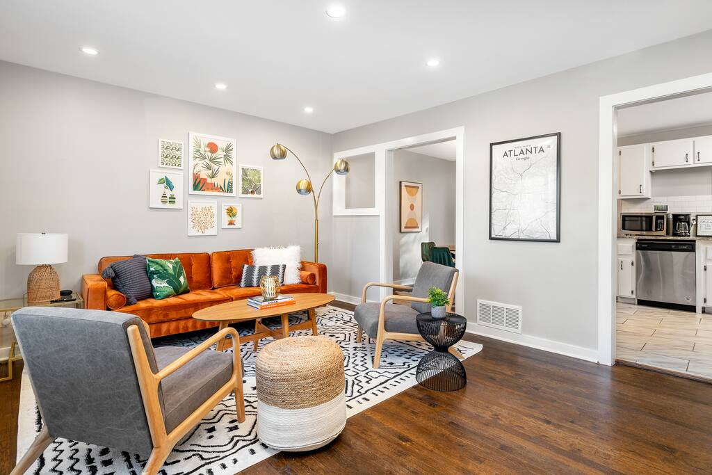 Our home is perfect for large groups looking for lots of space. The home includes 8 beds and can comfortably sleep up to 12 guests. The home features 3 different living room areas and lots of style, technology, and comfort for your stay in Atlanta. We are located on a quiet, tree-filled street 10-15 minutes from downtown and 15-20 minutes from the airport. Check out the rest of our listing description and photos to see what makes our space the perfect home for your stay in Atlanta.