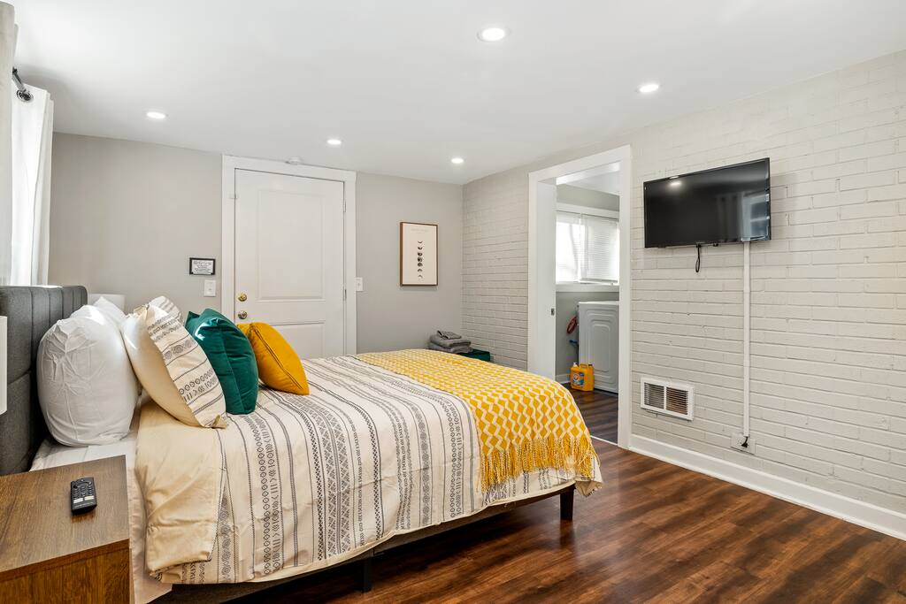 Main Floor: The front door opens into a roomy living area that has lots of seating and a 55 inch smart TV with Roku. The dining room and kitchen are also on this level of the home. The kitchen includes lots of cooking gear and a nice array of spices & oil. A coffee maker, filters, and coffee are provided. There are enough plates, glasses, bowls, and silverware to serve 12. Upstairs: The master medroom is located in the upstairs bedroom and features a super comfortable King bed and private half bathroom. There are two other bedrooms with queen beds and a full bathroom on this level of the home. There is also full bathroom located in the upstairs hallway. Basement: The basement features a bedroom with double bunk beds that is perfect for kids. This room also has a couch and smart TV. There is also another living room and bedroom in the basement that features a queen bed a two more smart TVs. There are two full bathrooms and a laundry room in the basement. Bed Summary: Our home includes 1king bed, 3 queen beds, and two sets of bunks beds (4x single beds) Outdoor Space: The patio on the back of the house has lots of seating. We suggest enjoying a meal or beverage outside since the weather in Atlanta is nice most of the year. Parking: There is a driveway with 3 parking spots. Additional cars will have no trouble finding free street parking. Our home features a total of 5 HD Smart TVs with Roku signed into Netflix, HBOMax, and Disney+. Guests can also log into their own streaming services via the Roku interface.